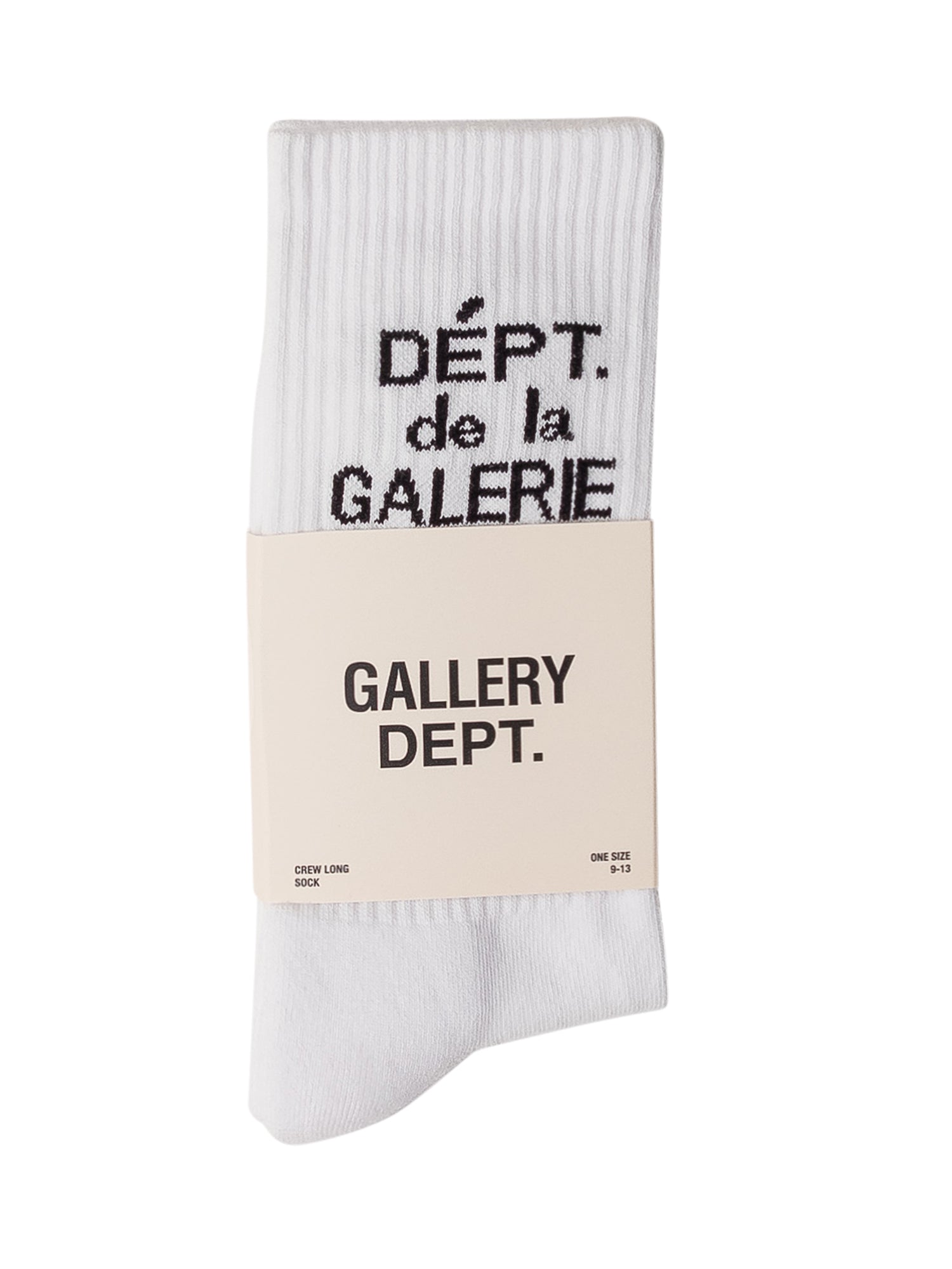 Calze bianche modello crew long in cotone a costine con logo DÉPT. de la GALERIE a contrasto. Design essenziale e contemporaneo, ideali per completare look casual e streetwear con un tocco distintivo.