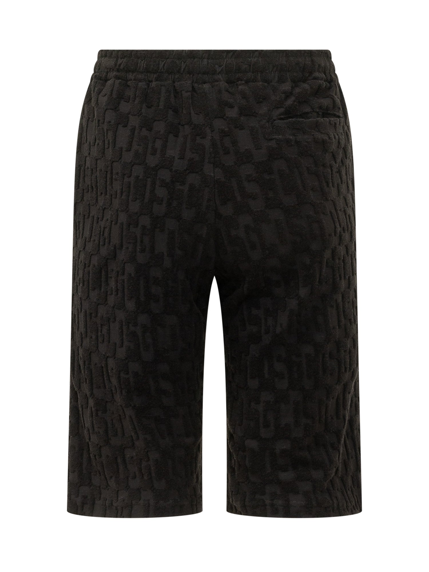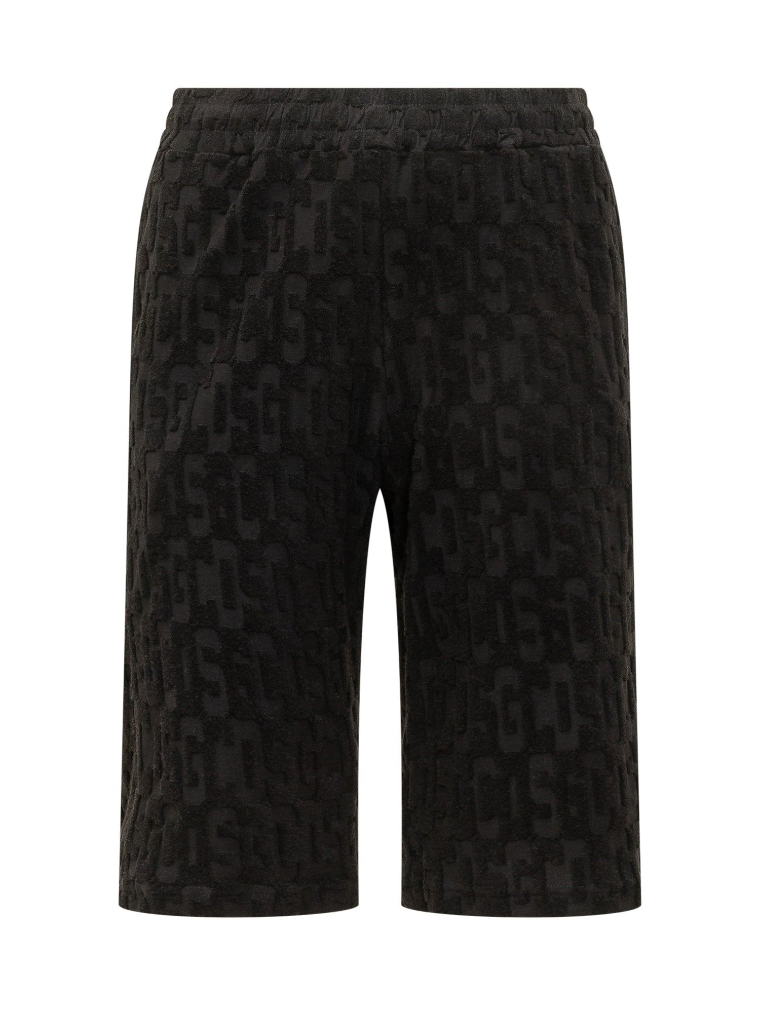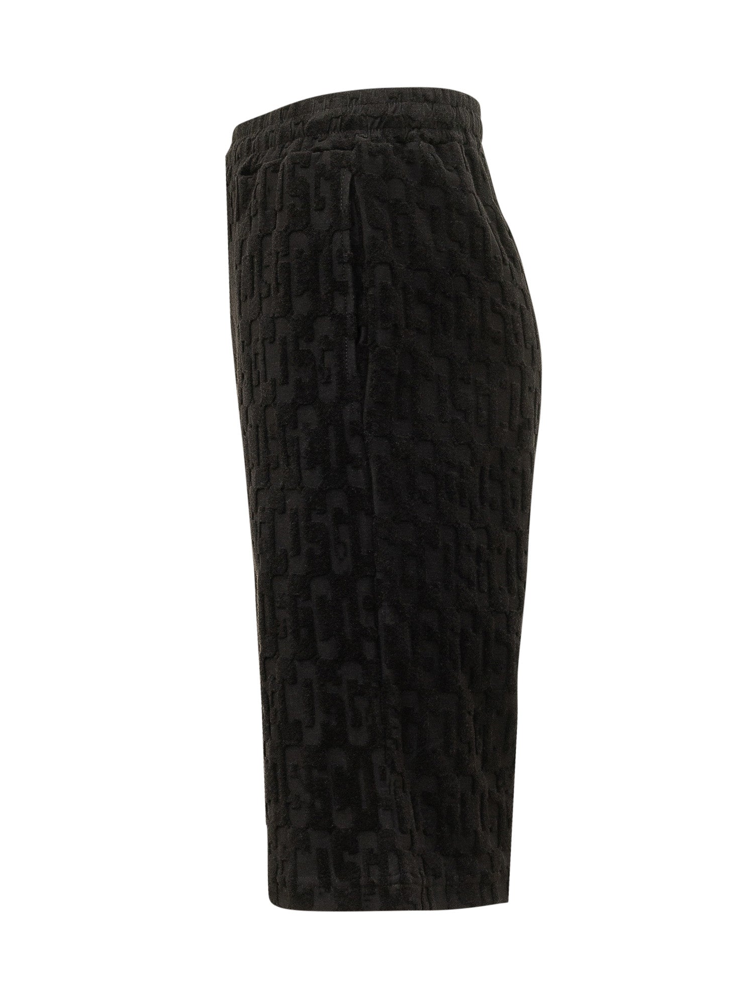Gli shorts presentano vita elasticizzata, lunghezza al ginocchio e lavorazione jacquard con motivo monogram all-over tono su tono, vestibilità morbida.