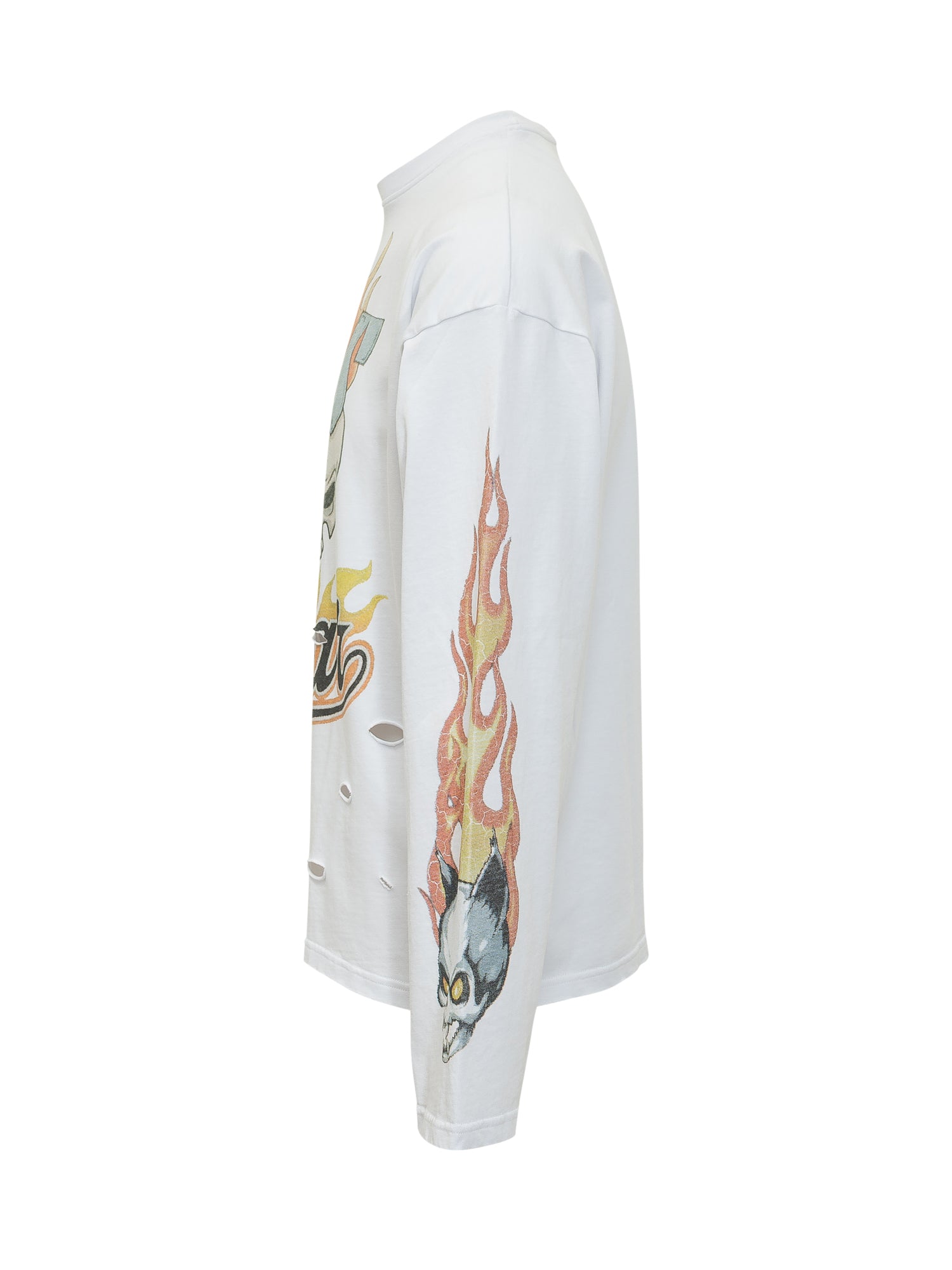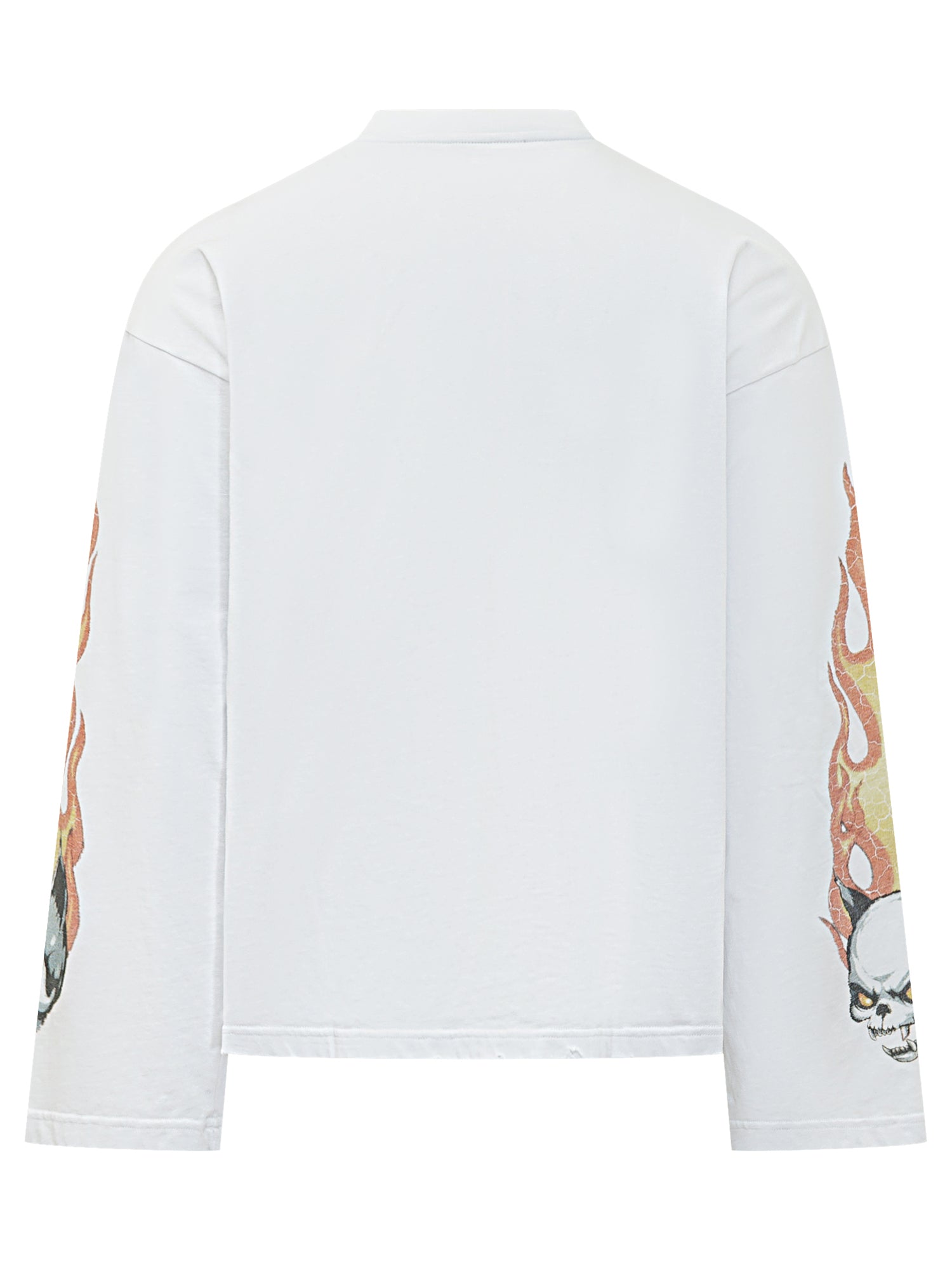 T-shirt a maniche lunghe con girocollo e stampa grafica frontale con teschi e lettering Riders. Dettagli distressed con fori visibili sul davanti e stampa sulle maniche. Linea dritta dal carattere deciso.