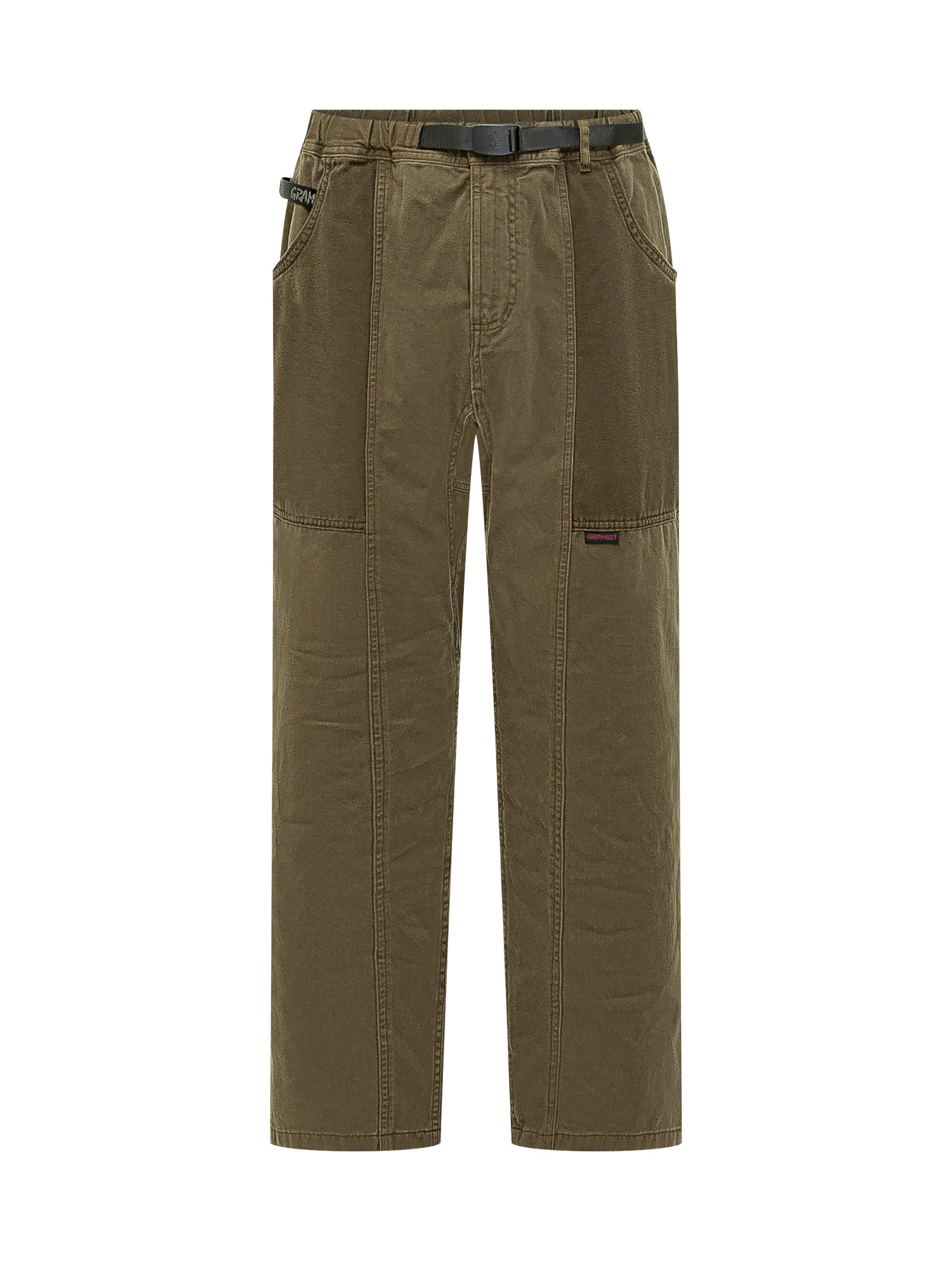 Pantaloni con vita elasticizzata e cintura integrata con fibbia. Tasche utility laterali e tasche frontali oblique. Gamba dritta e struttura resistente per attività outdoor.