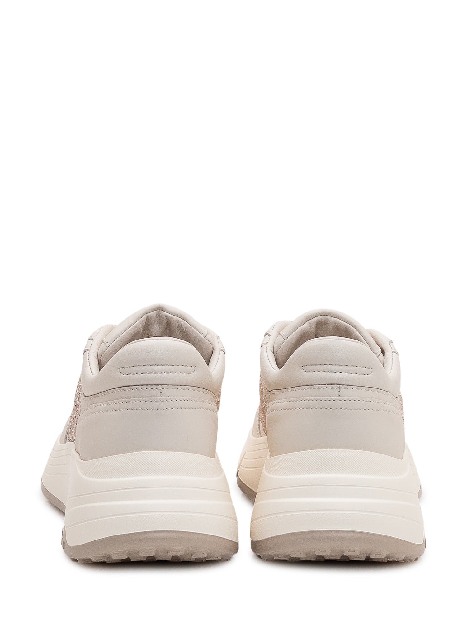 Sneaker allacciata dal design contemporaneo con tomaia liscia e dettagli a contrasto.
