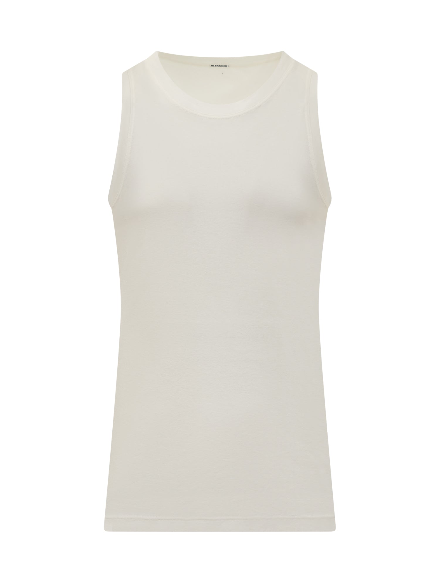Canotta smanicata in cotone. Girocollo. Orli a costine. T-shirts a maniche corte. Girocollo. Orli a costine.