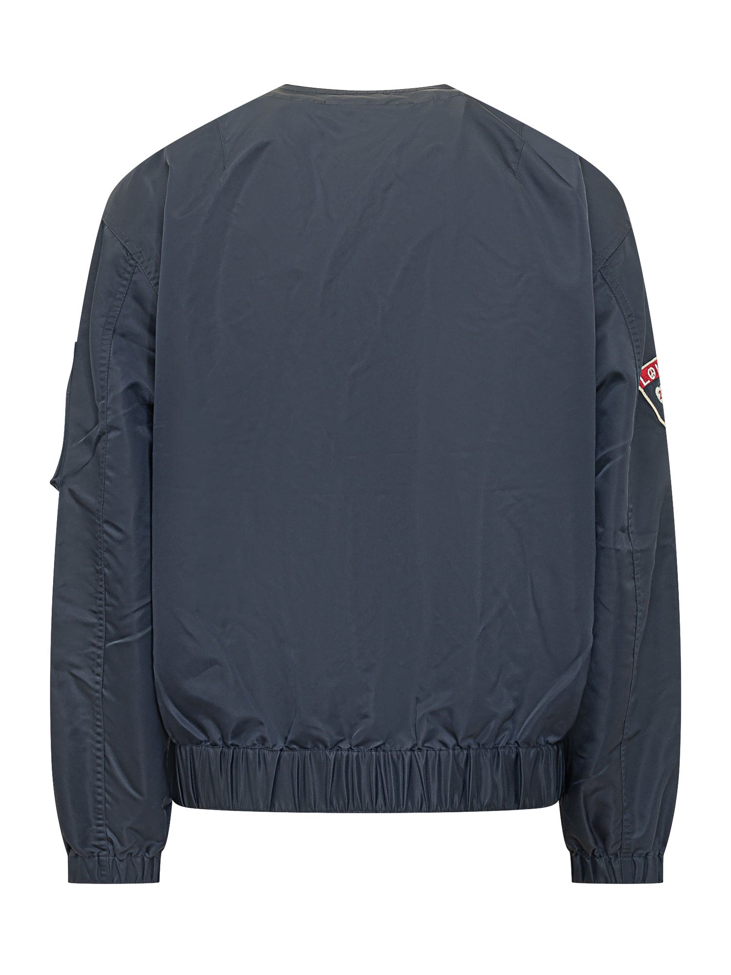 Giacca bomber leggera senza collo con chiusura frontale a zip. Caratterizzata da patch ricamate a contrasto sul petto e sulla manica, tasca utility con zip sul braccio e finiture elasticizzate su polsi e fondo. Design contemporaneo dallo stile urbano, ideale per completare look casual e streetwear.
