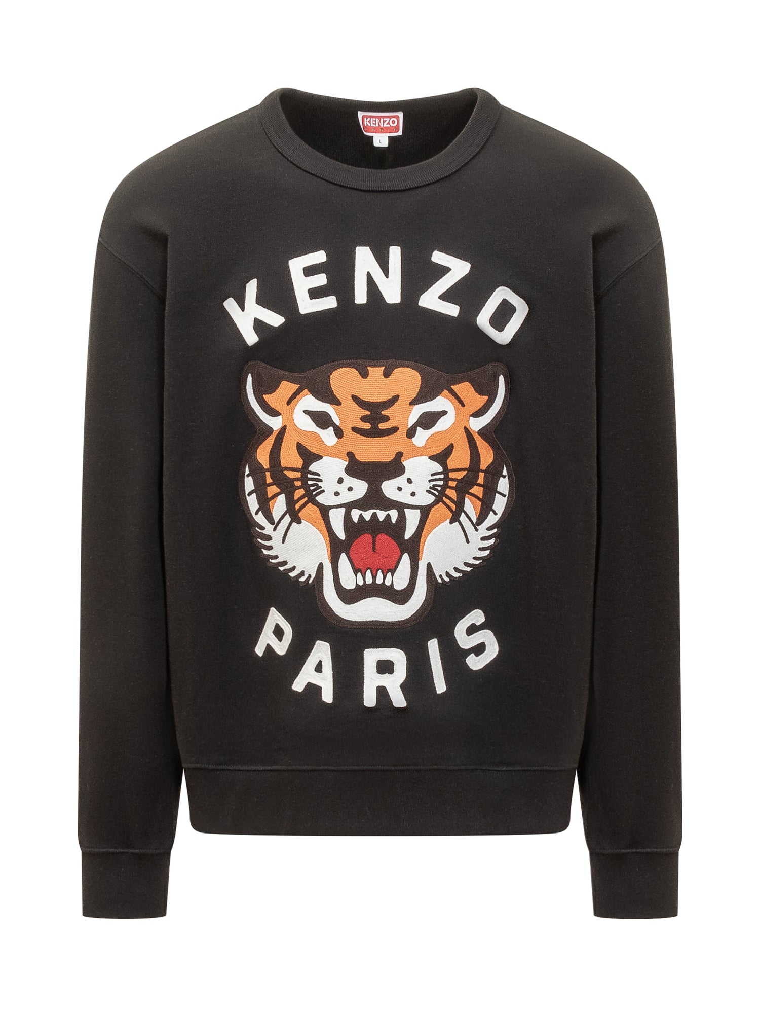 Felpa nera in cotone. Girocollo. Stampa logo tiger sul davanti.