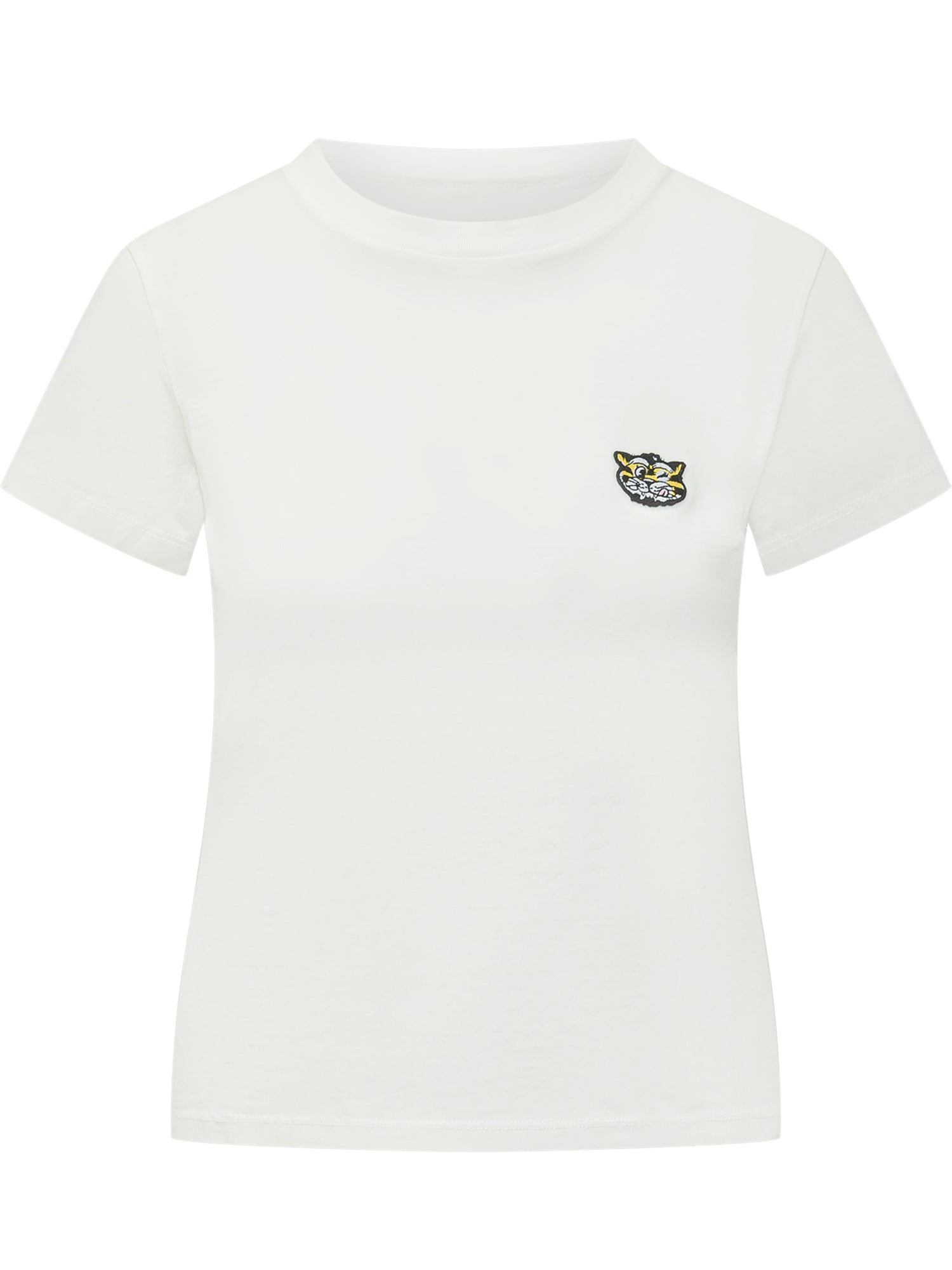 T-shirt girocollo color avorio dal taglio essenziale, arricchita dal piccolo patch ricamato con testa di tigre sul petto. Un basic iconico e versatile, perfetto da indossare da solo o sotto giacche e overshirt.
