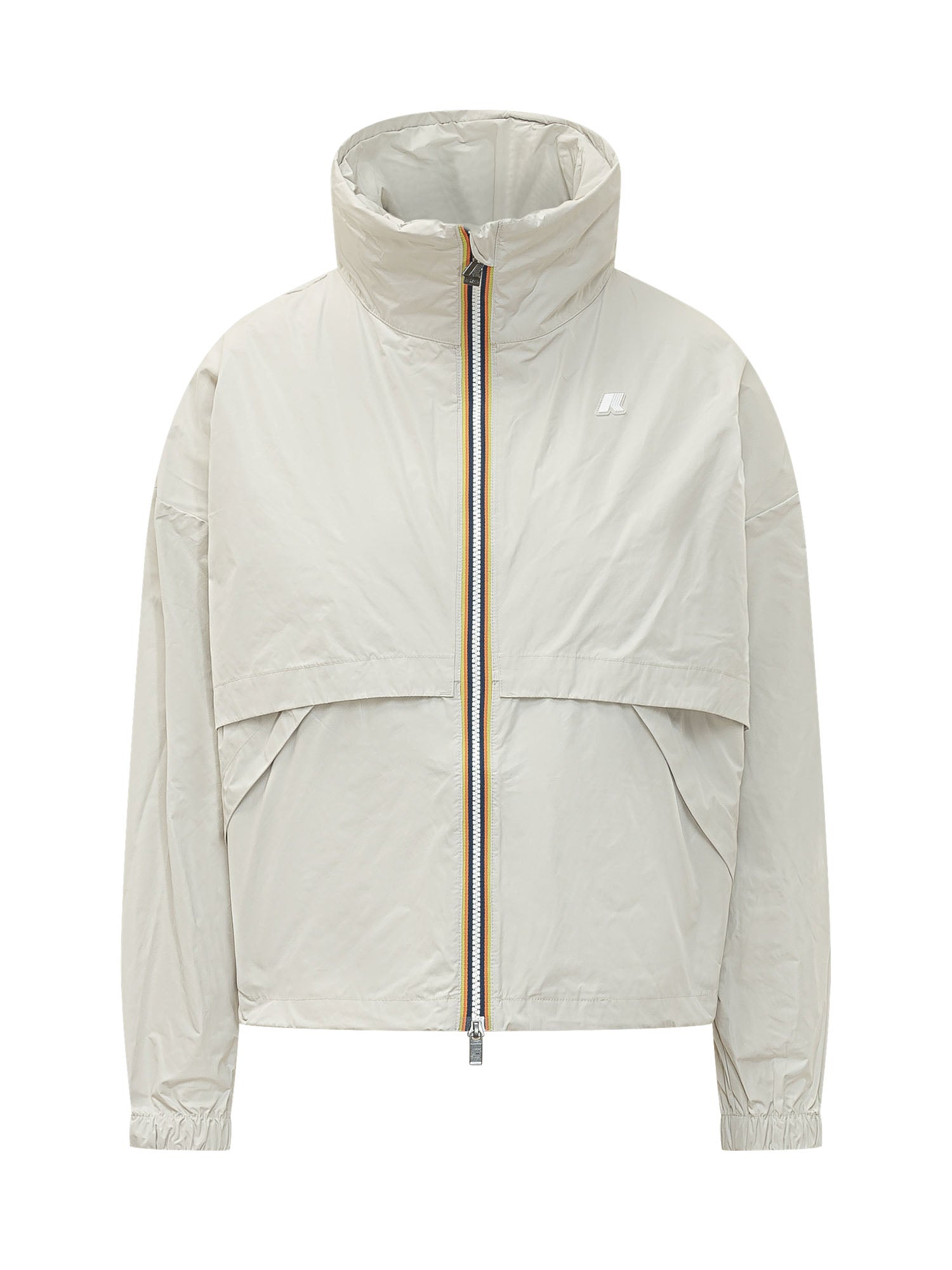 Giacca con collo alto e chiusura frontale con zip. Tasche laterali e dettaglio logo sul petto.
