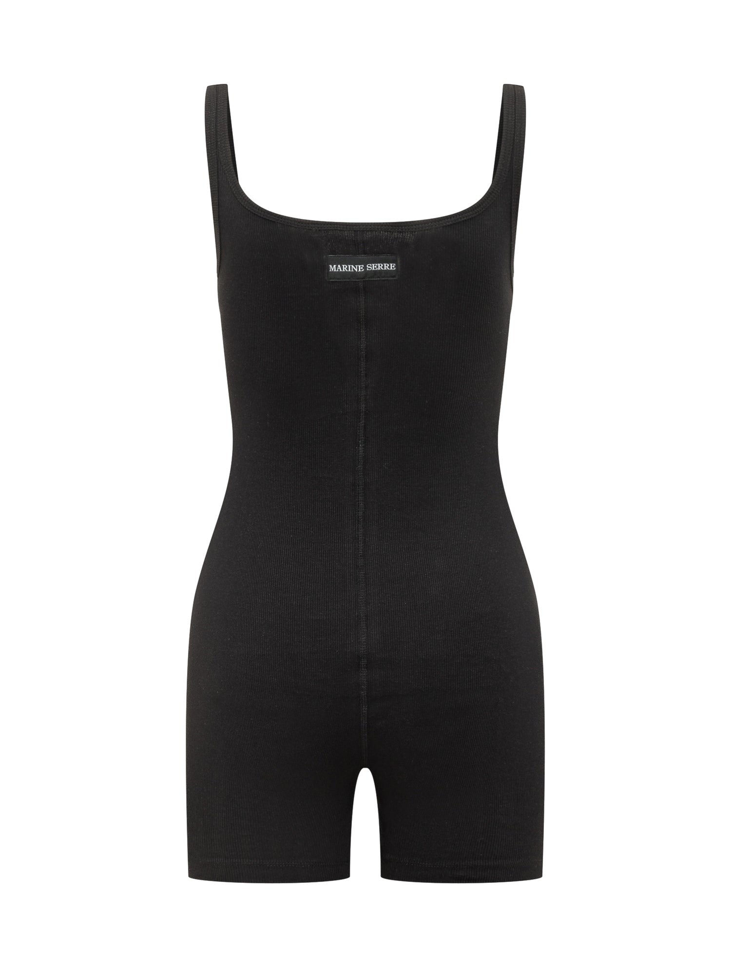 Tuta corta con spalline larghe e scollo arrotondato. Linea aderente con logo frontale a contrasto. Design compatto e sportivo.