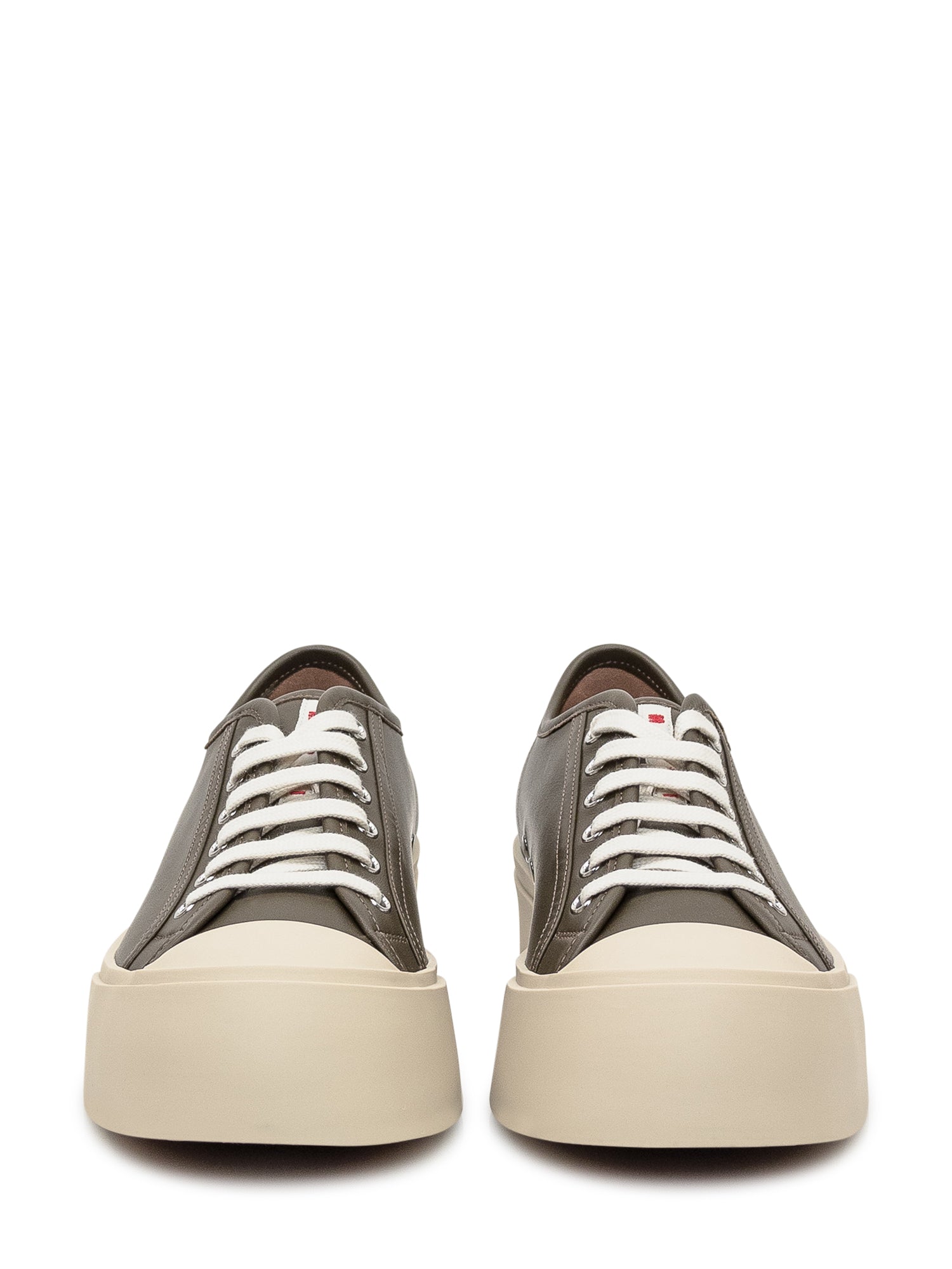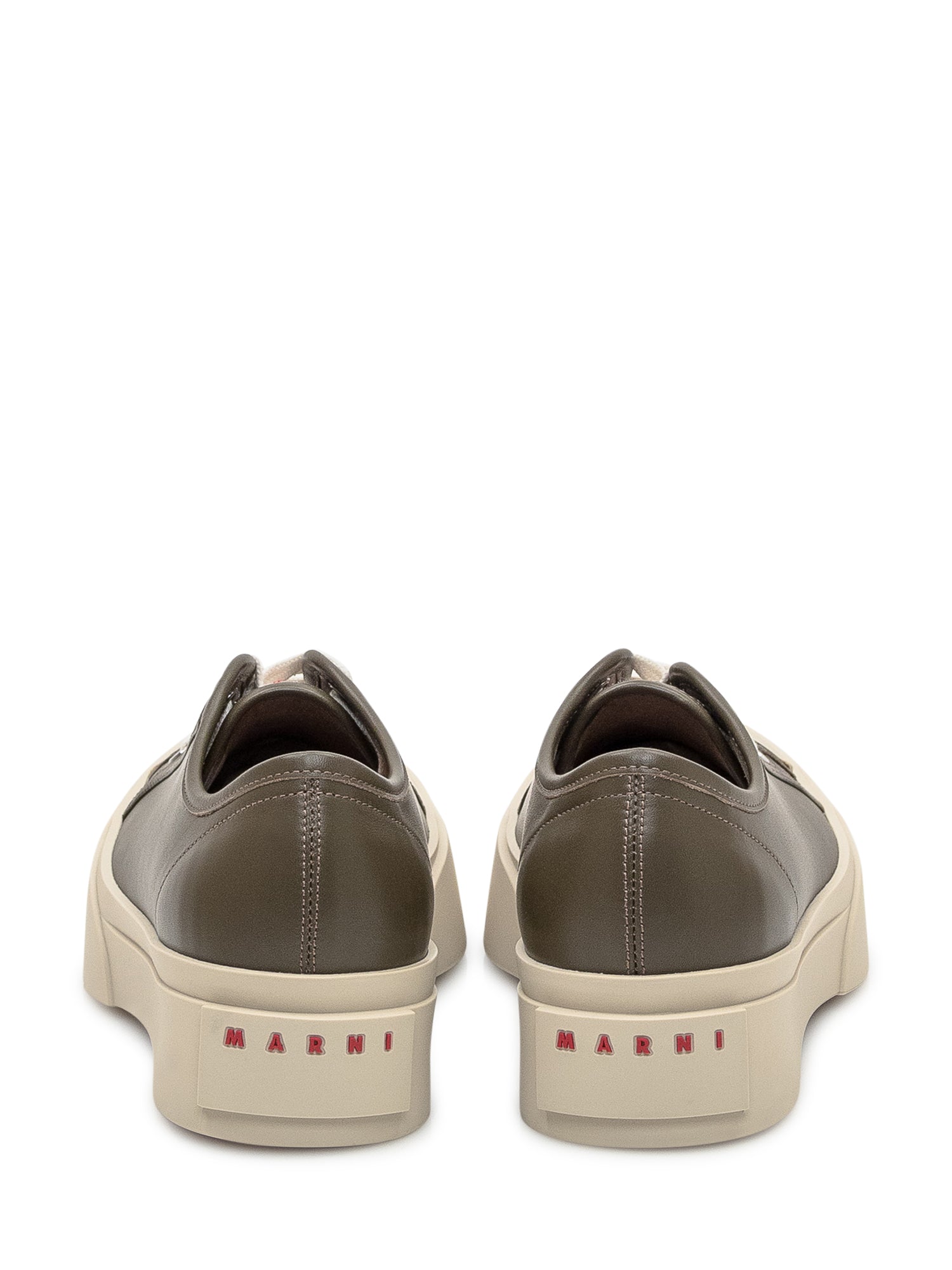 Scarpa in pelle di vitello. Grana liscia. Chiusura frontale con lacci. Applicazione sulla linguetta con logo. Punta tonda in gomma. Soletta in pelle con logo. Suola rialzata in gomma. Lacci bianchi di ricambio. M