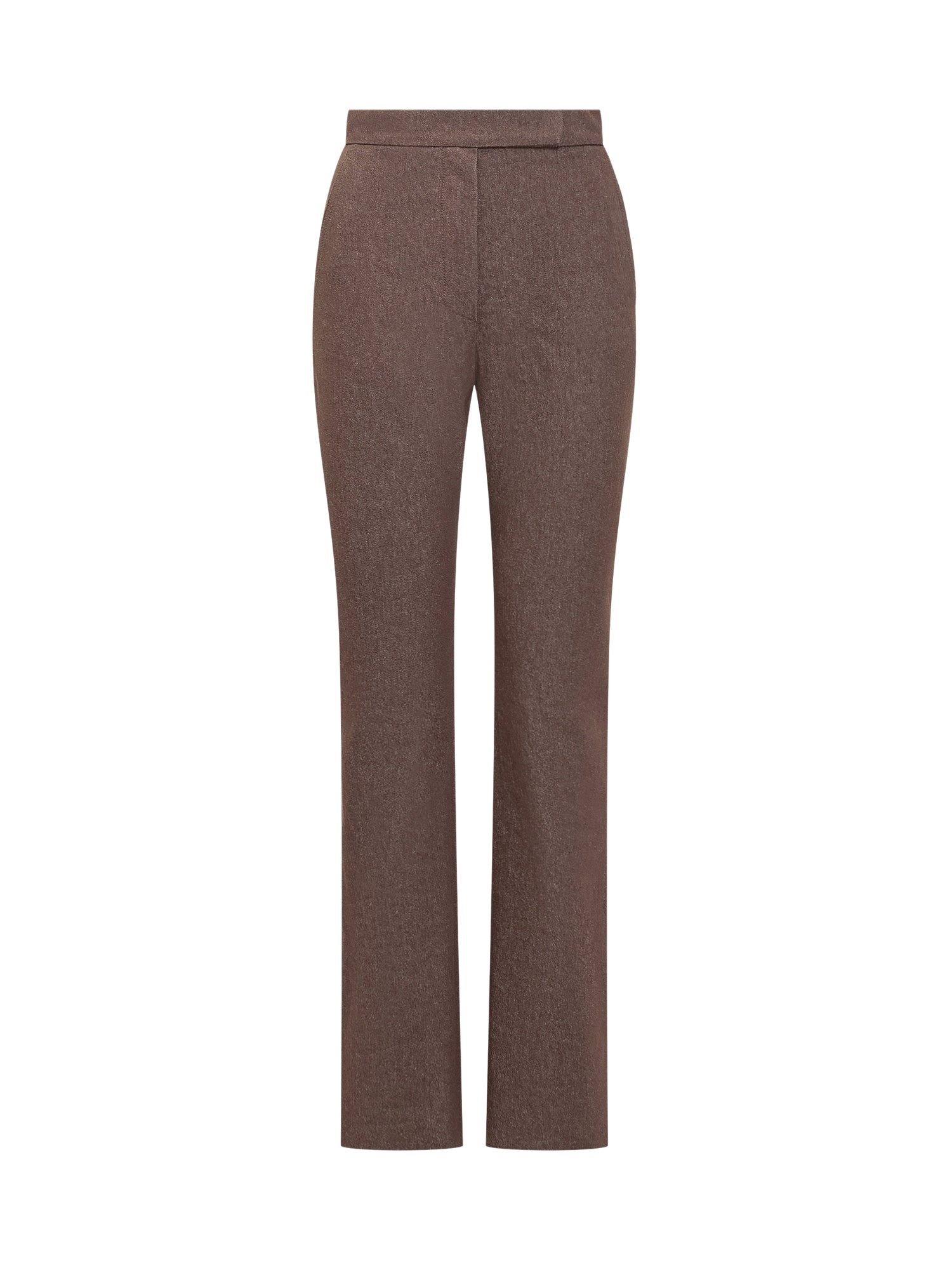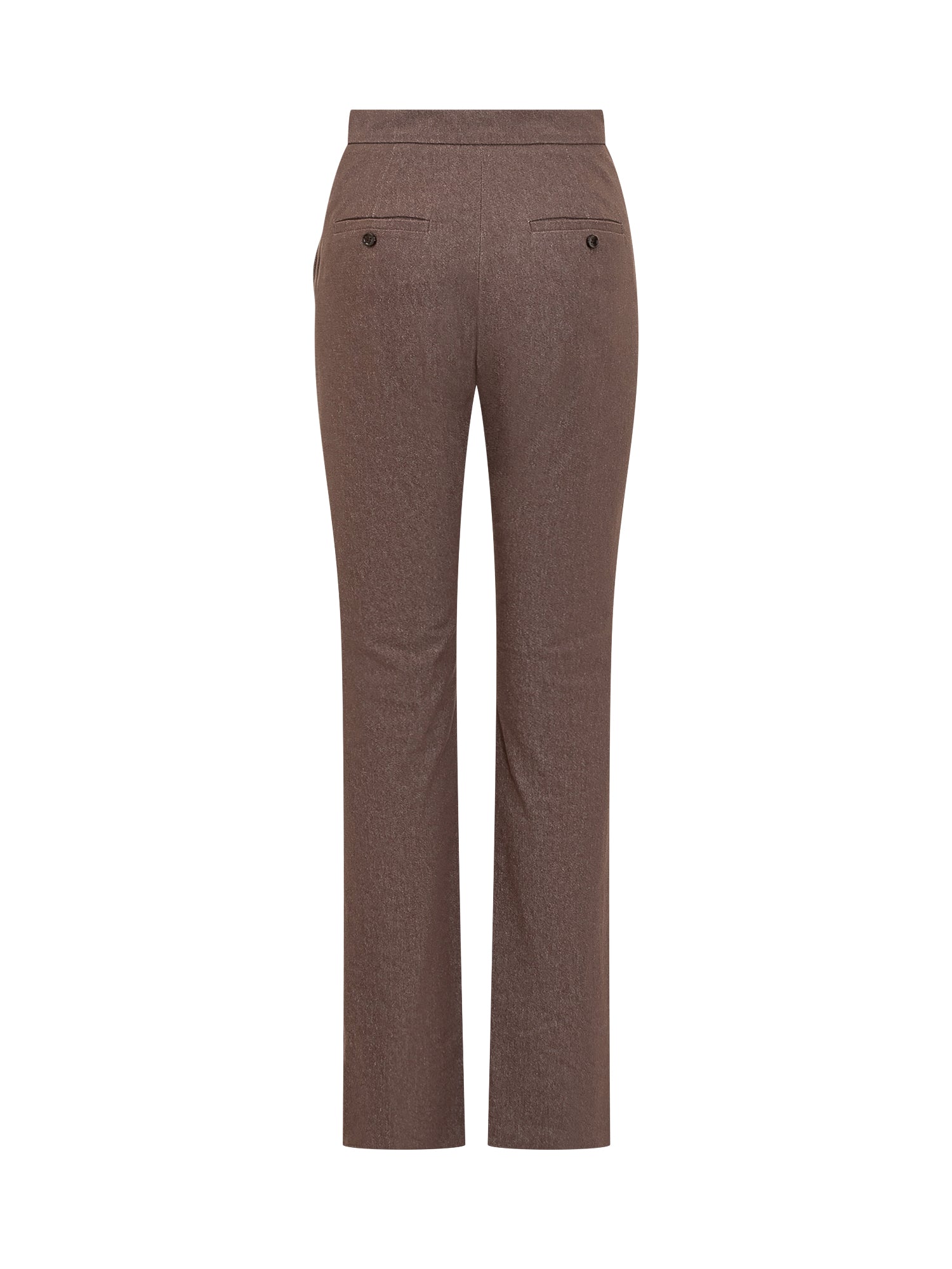 Pantaloni marrone. Tasche a filo. Chiusura frontale con gancino e zip a scomparsa.