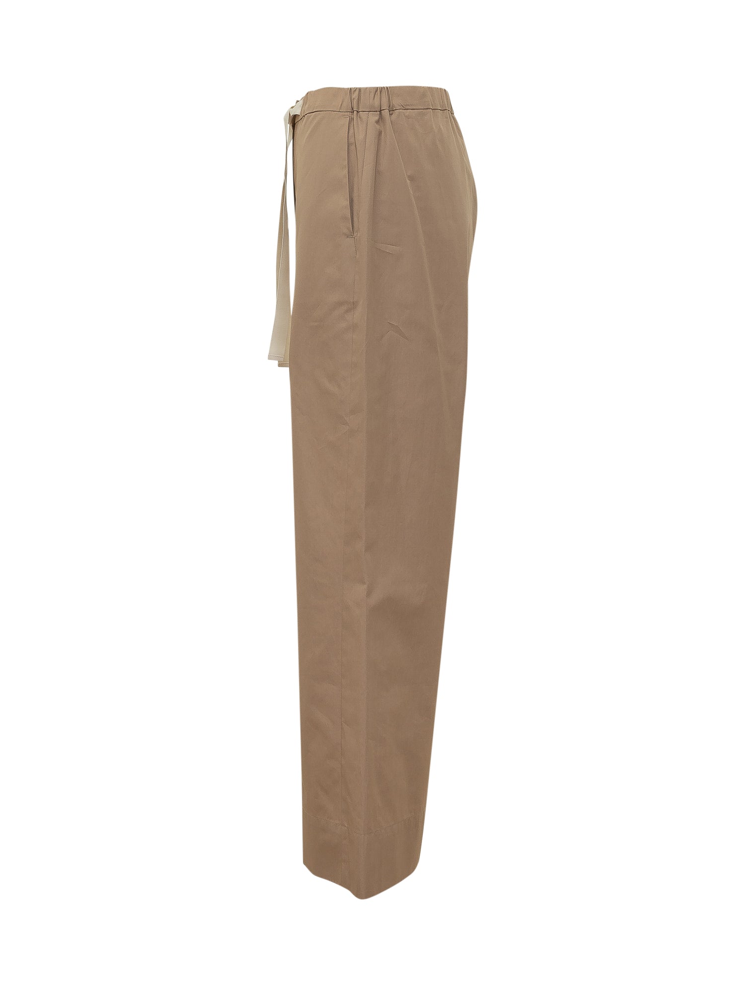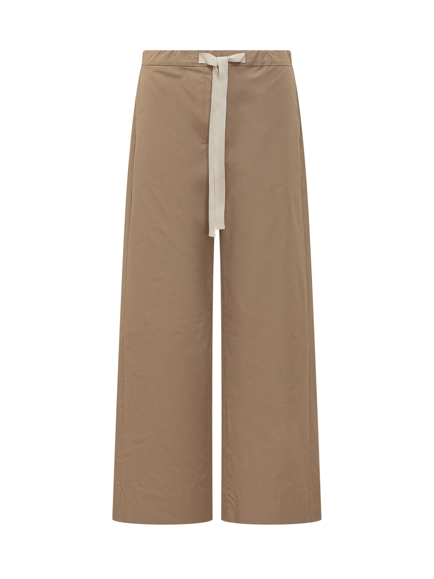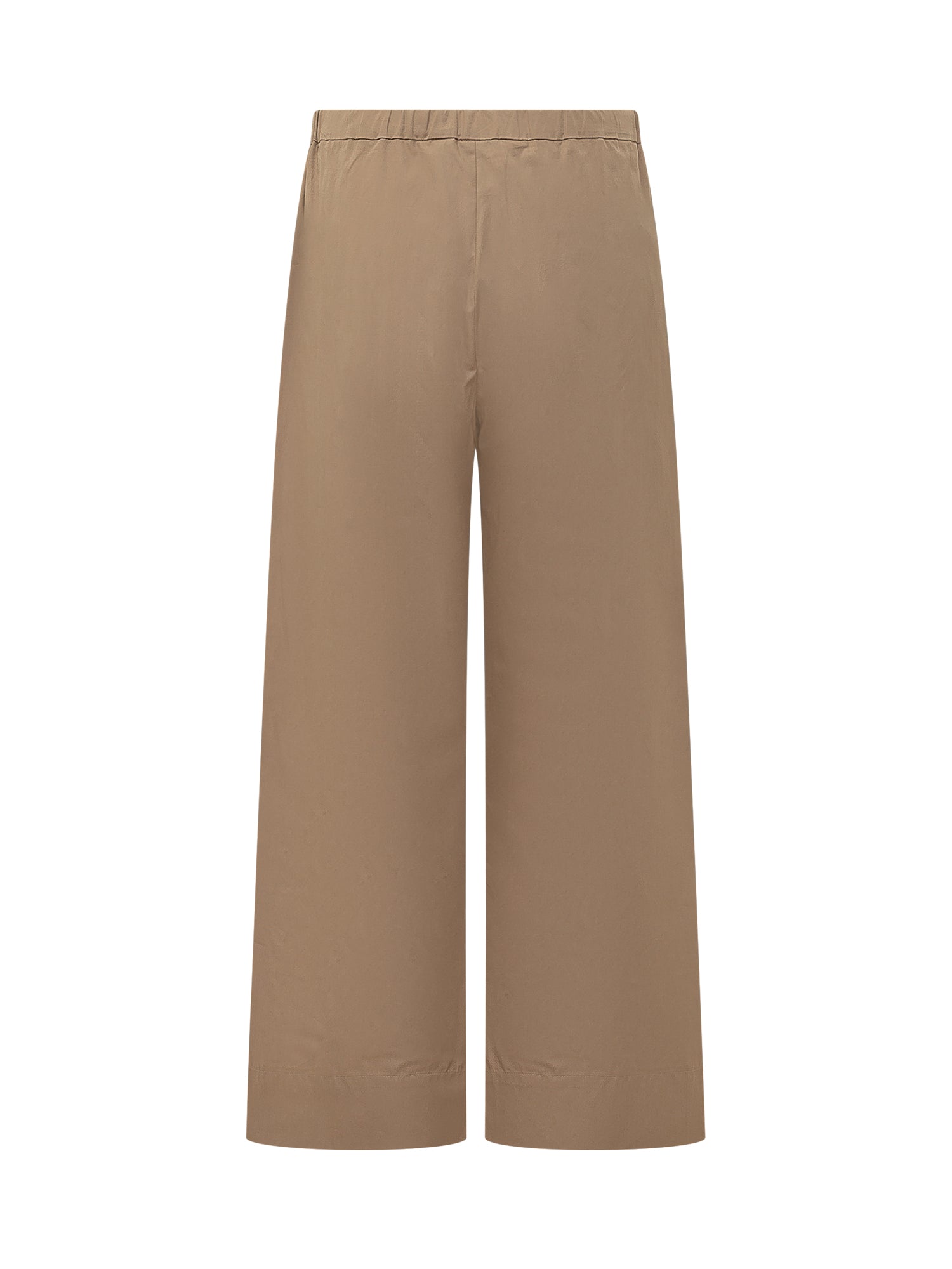 Pantaloni a gamba ampia con vita elasticizzata e coulisse regolabile. Linea dritta e struttura leggera adatta a look quotidiani e raffinati.