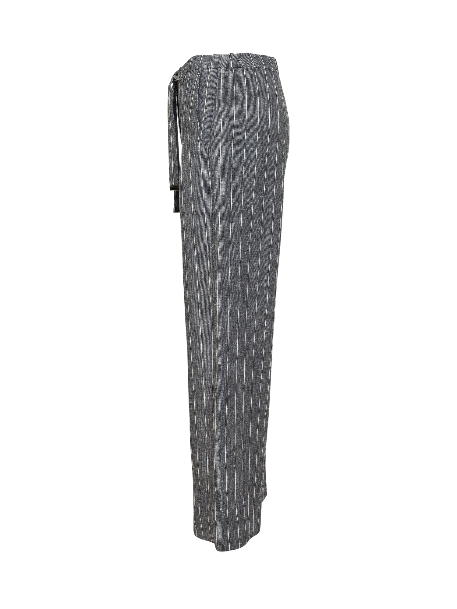 Pantaloni a gamba ampia con motivo a righe verticali e vita elasticizzata con coulisse. Linea fluida e lunghezza regolare dal design distintivo.