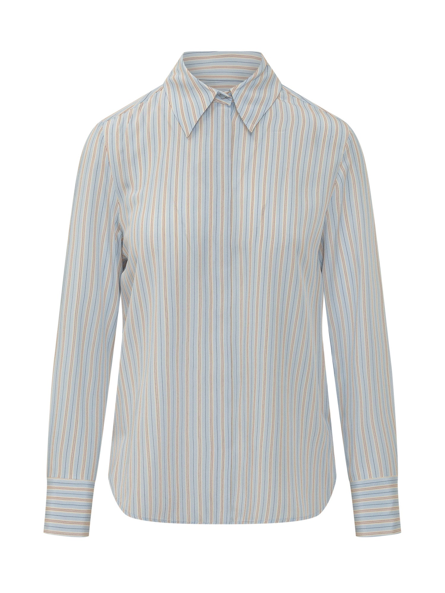 Camicia a righe con colletto classico, maniche lunghe con polsini, linea regular.