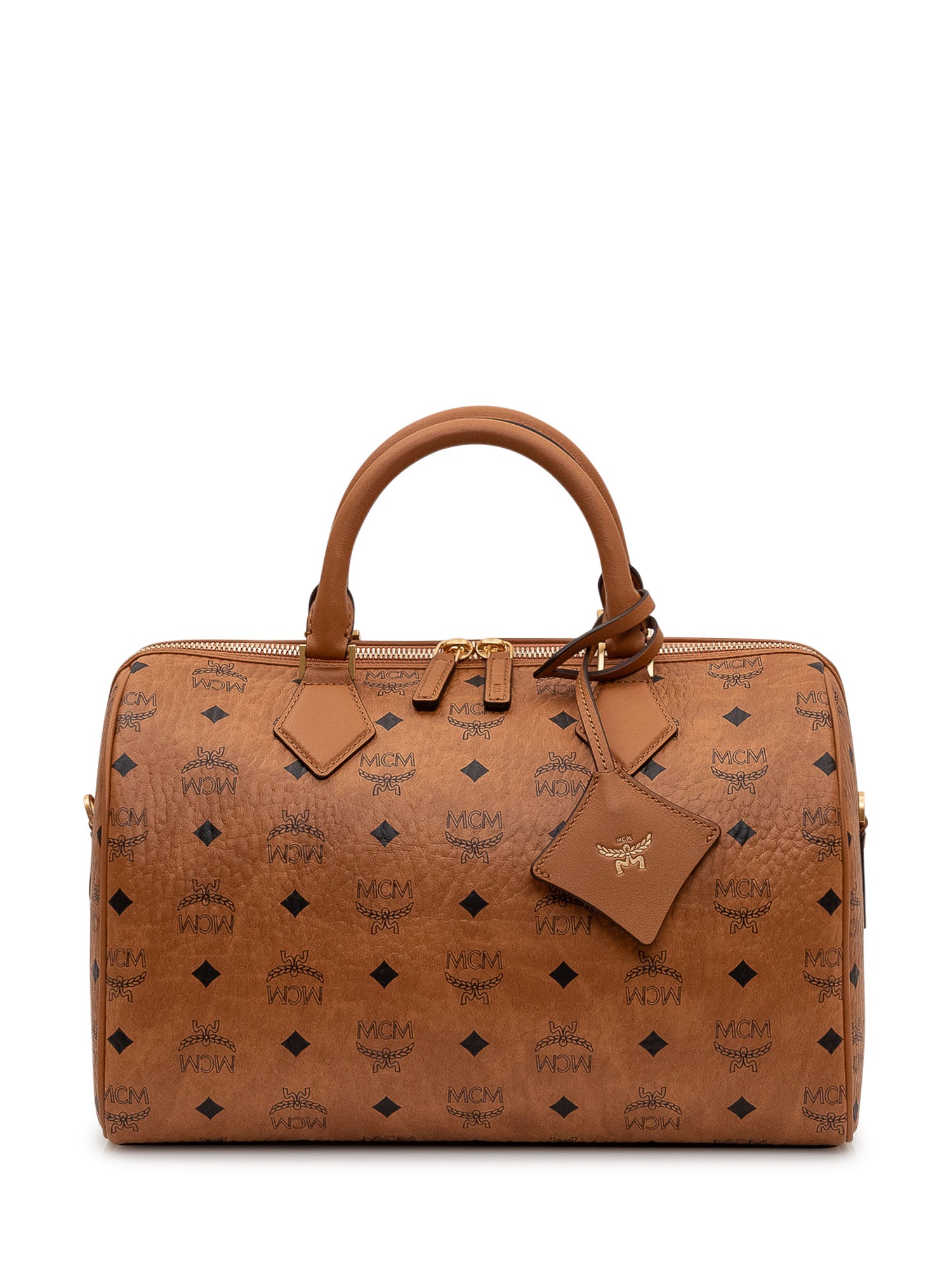 Borsa Boston media con stampa allover, chiusura zip a doppio cursore e doppi manici. Tracolla regolabile removibile e charm porta card.Dimensioni: 30x20x17