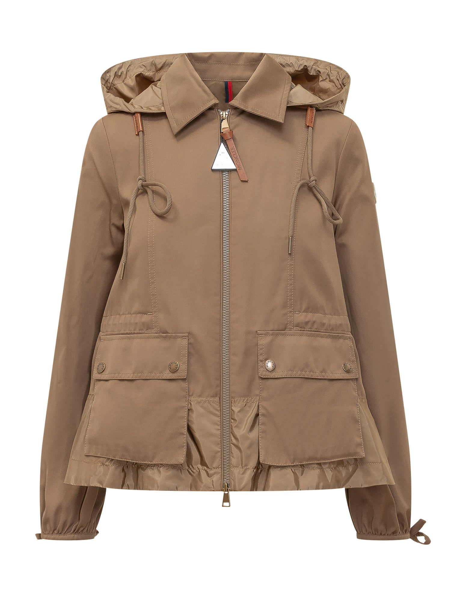 Giacca con cappuccio e chiusura frontale con zip. Tasche applicate con patta e bottoni e coulisse regolabile. Design strutturato e pratico.
