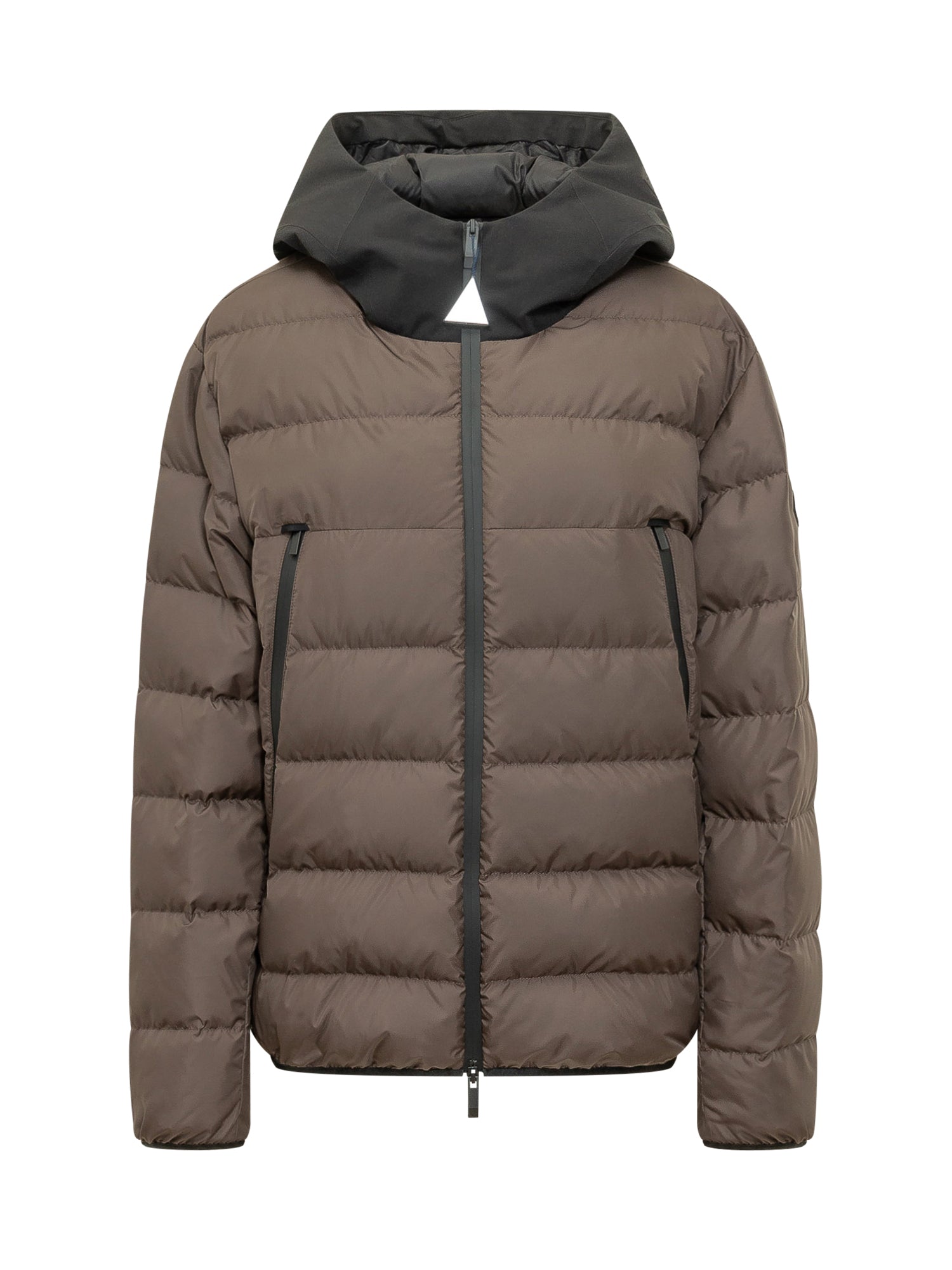 Giacca Vega imbottita dal design essenziale e moderno, realizzata in nylon tecnico con trapuntatura orizzontale. Dotata di cappuccio integrato a contrasto, chiusura frontale con zip e tasche laterali con chiusura zip.