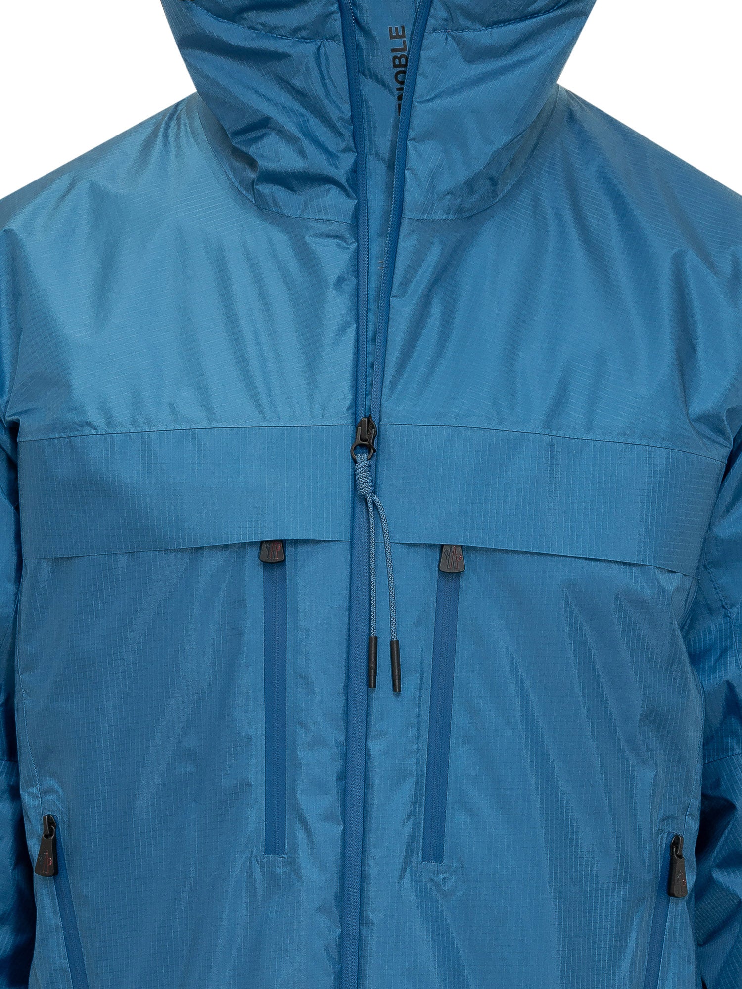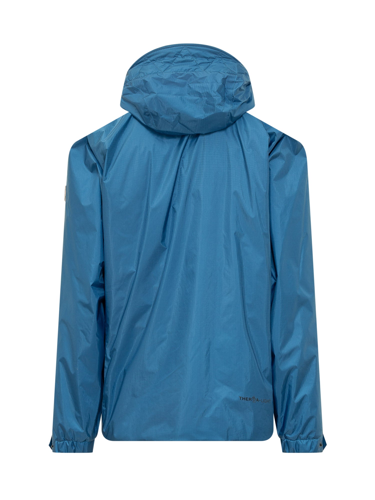 Giacca con cappuccio regolabile e chiusura frontale con zip. Tasche laterali e tasche verticali sul petto con zip. Maniche lunghe con polsini regolabili e logo stampato sulla manica.