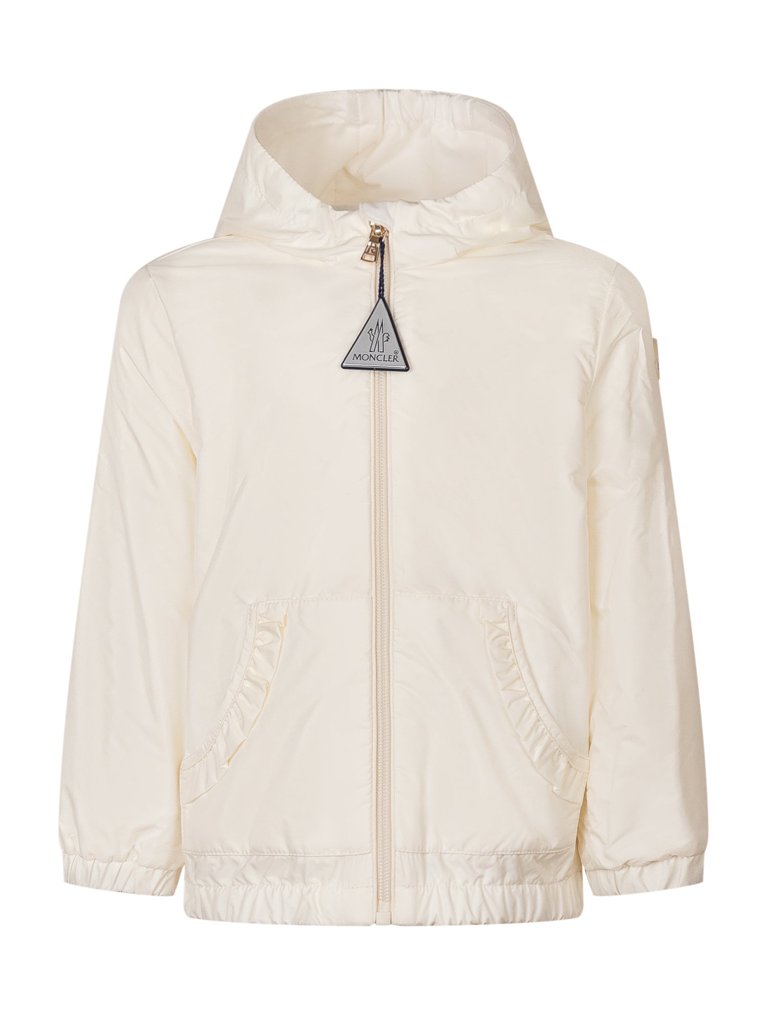 Giacca leggera con cappuccio e vestibilità regolare. Chiusura frontale con zip, tasche applicate con dettaglio arricciato, polsini e fondo elasticizzati.