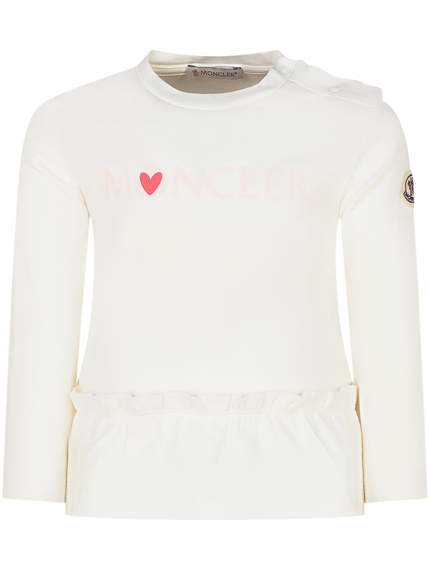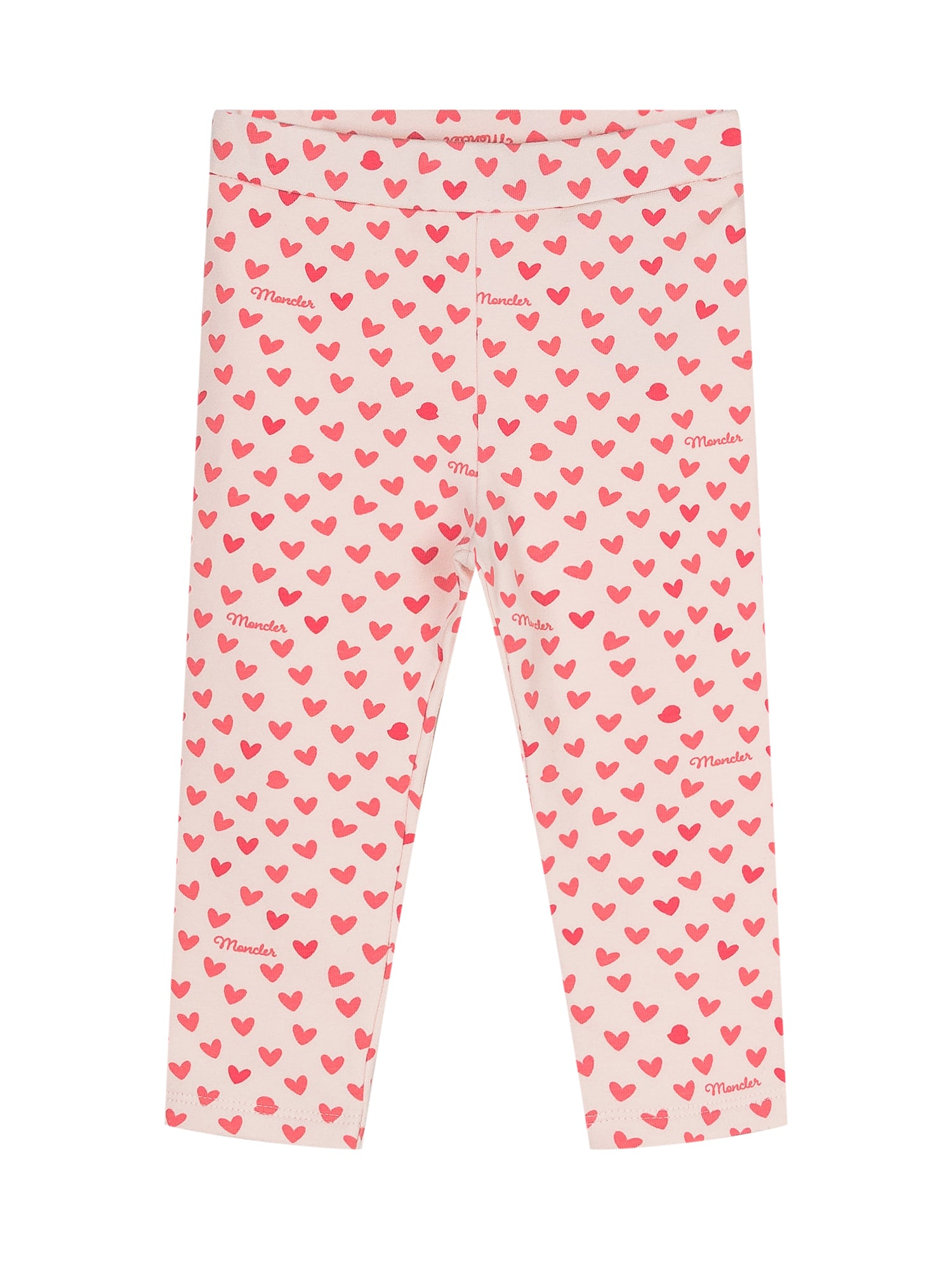 Completo in cotone composto da maglia bianca a maniche lunghe con logo e cuore frontale e leggings rosa con stampa cuori.