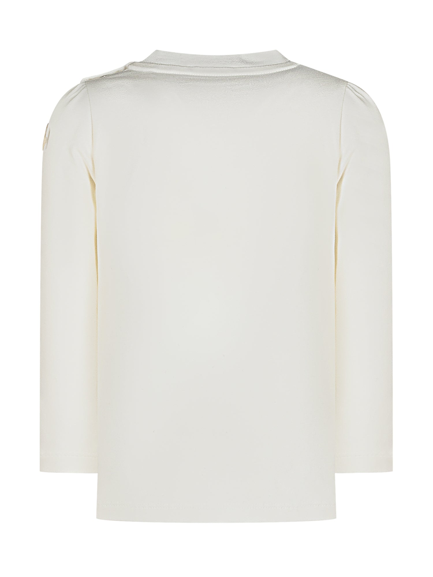 T-shirt bianca a maniche lunghe con logo Moncler multicolore decorato con cuori.