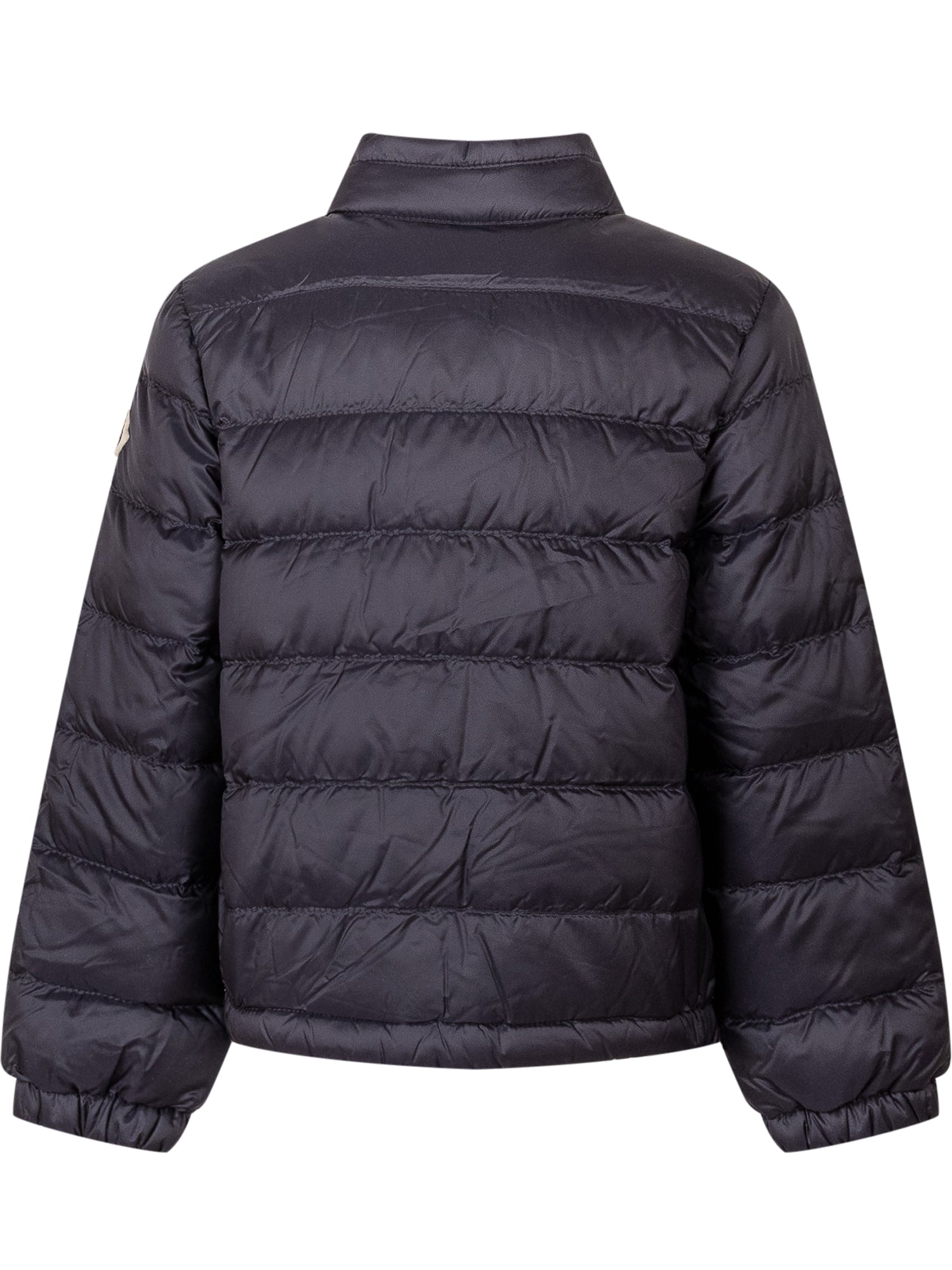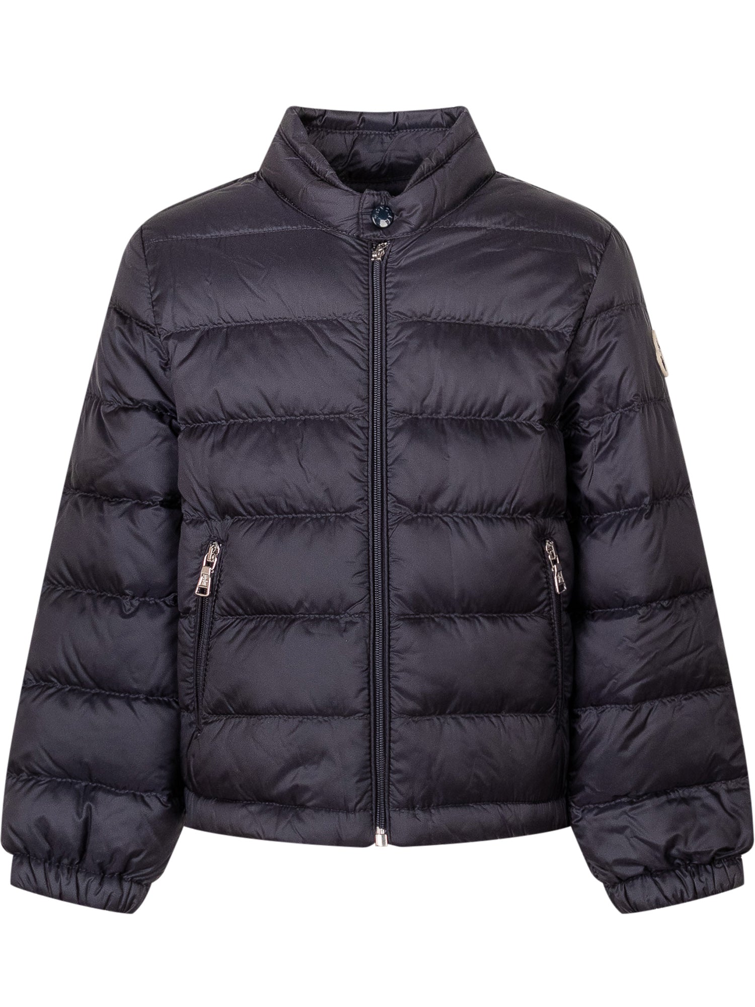 Piumino leggero con trapuntatura orizzontale e vestibilità regolare. Collo alto con bottone di chiusura, zip frontale e tasche laterali con zip.