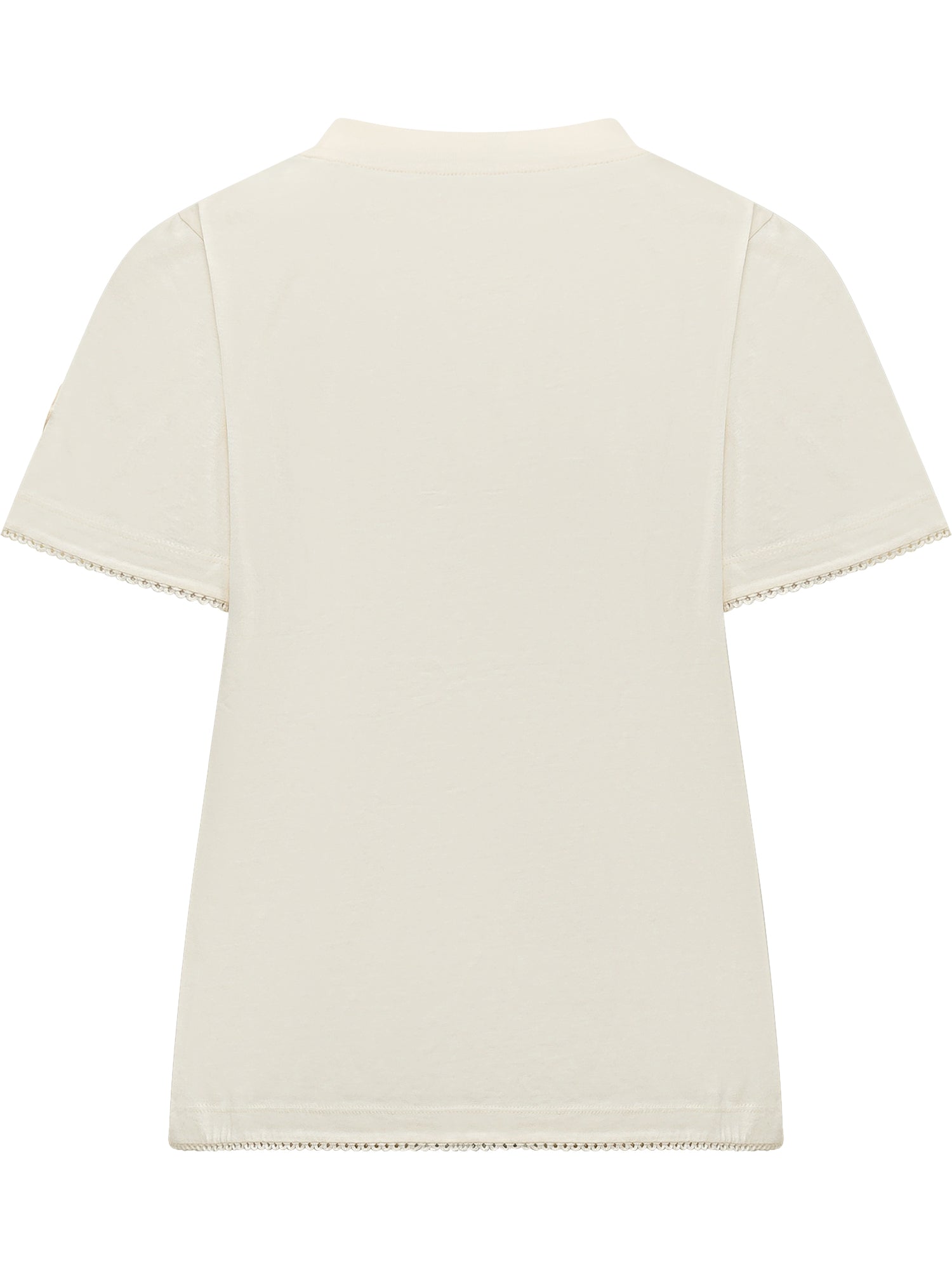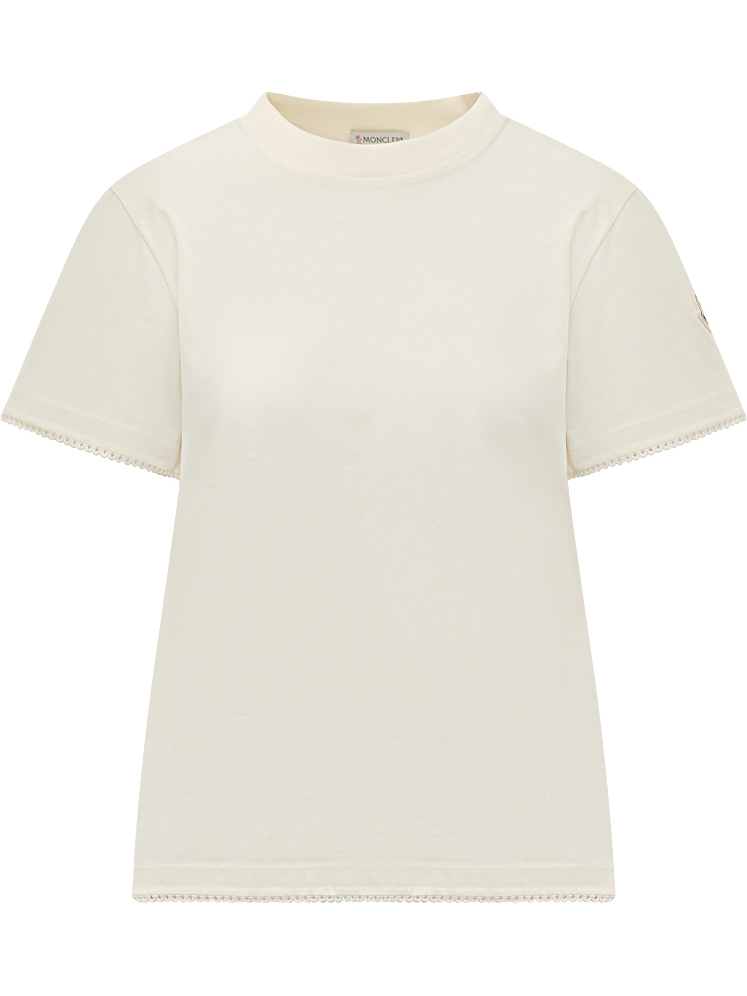 T-shirt con girocollo e maniche corte, finiture ondulate su maniche e fondo, logo applicato sulla manica, linea dritta con lunghezza regolare.