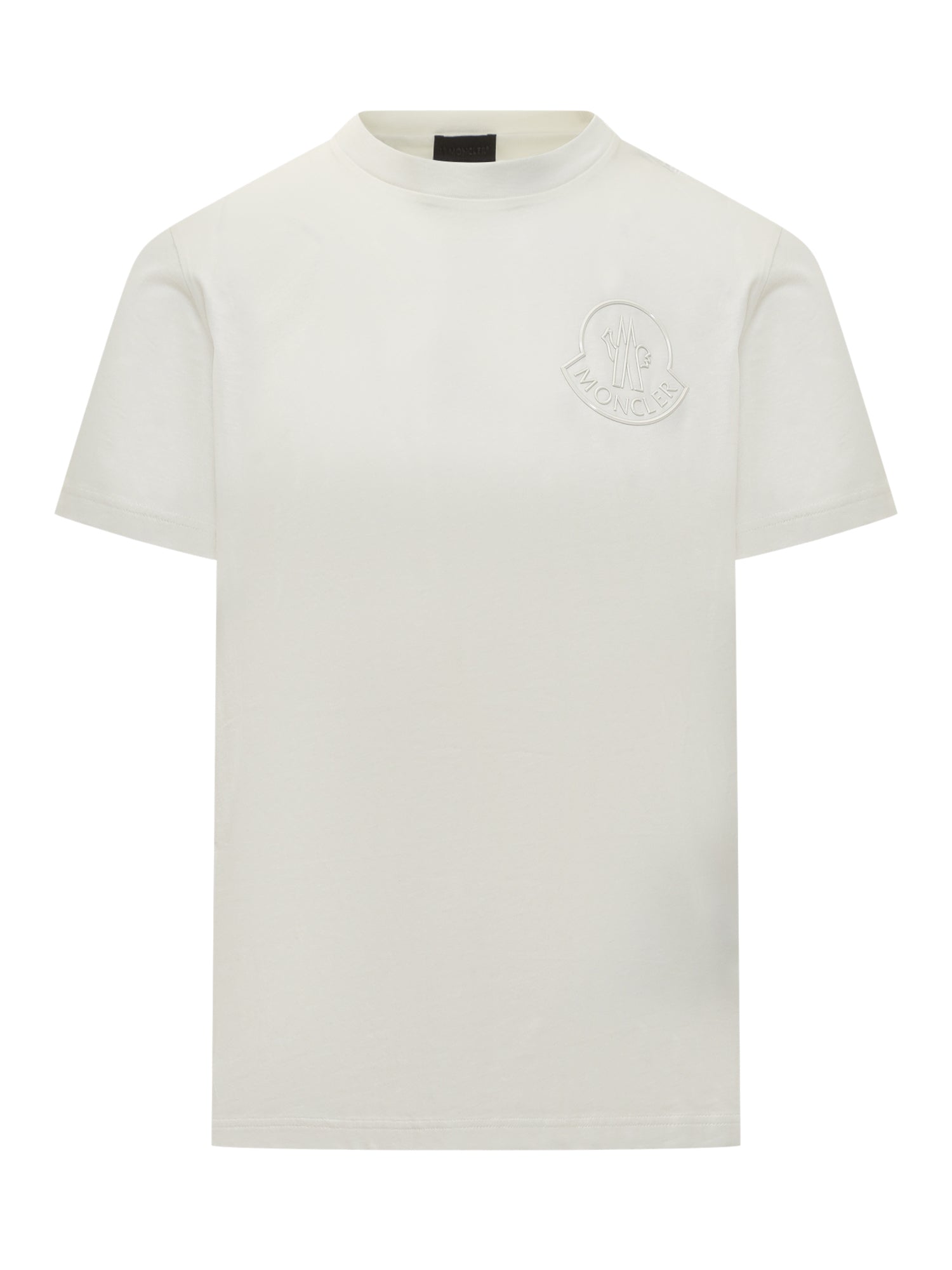 T-shirt Moncler bianca in cotone con logo tono su tono sul petto.