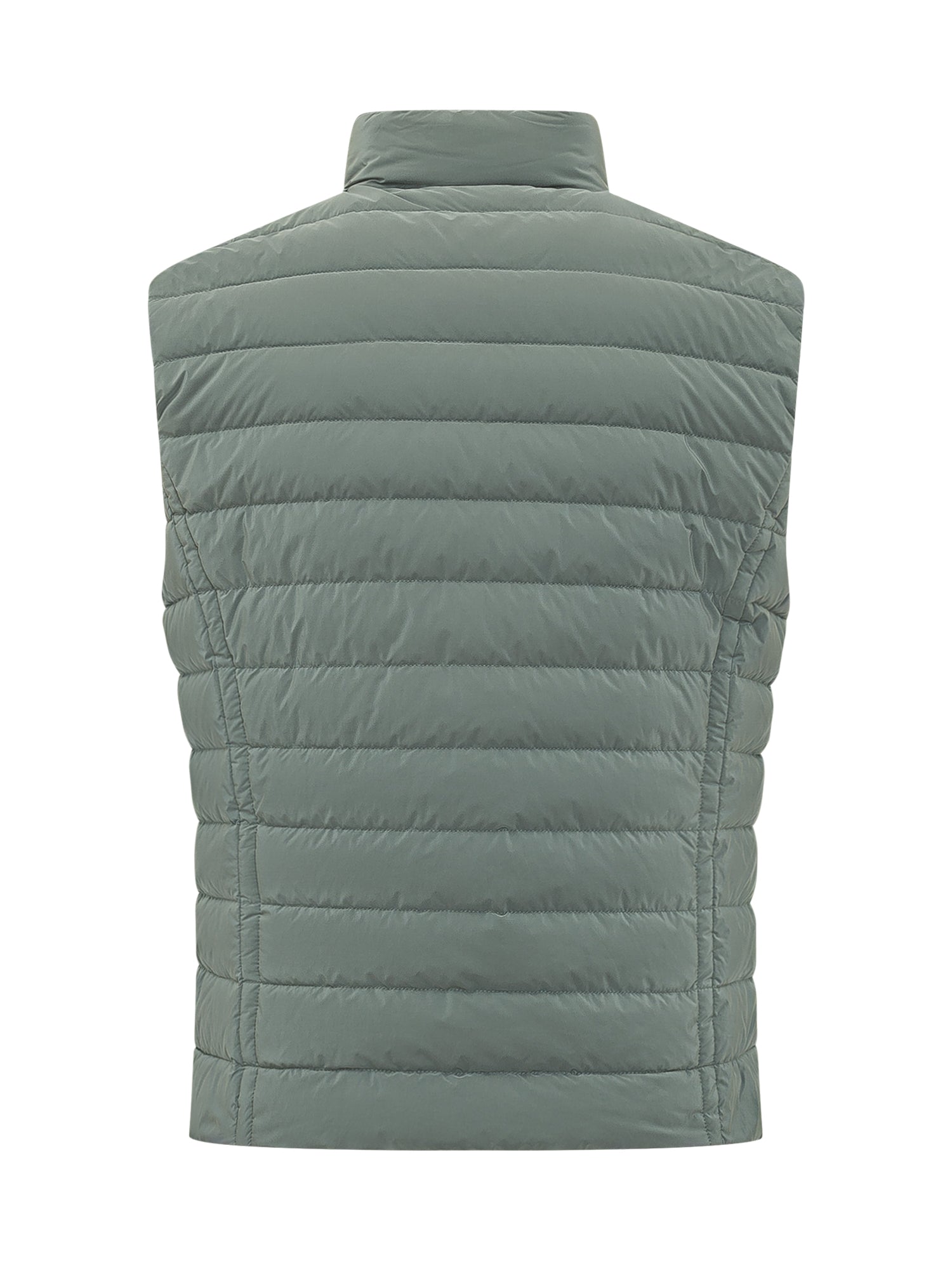 Gilet Calaf-Os con collo alto e chiusura frontale con zip. Modello trapuntato con design senza maniche e tasche laterali, linea dritta e struttura imbottita con cuciture orizzontali.