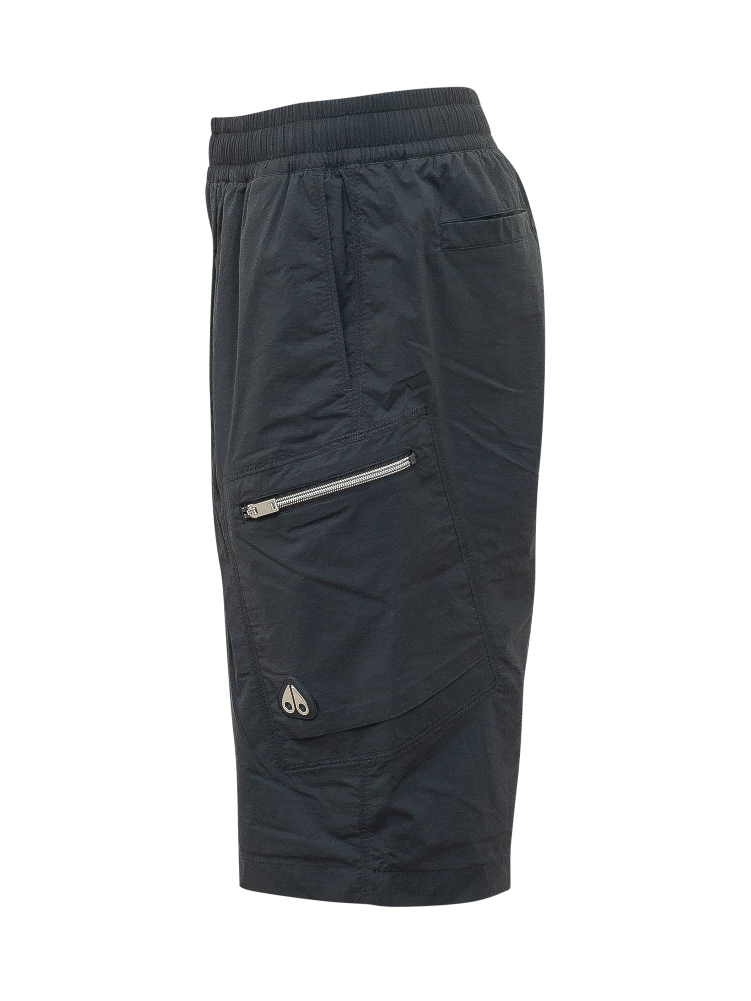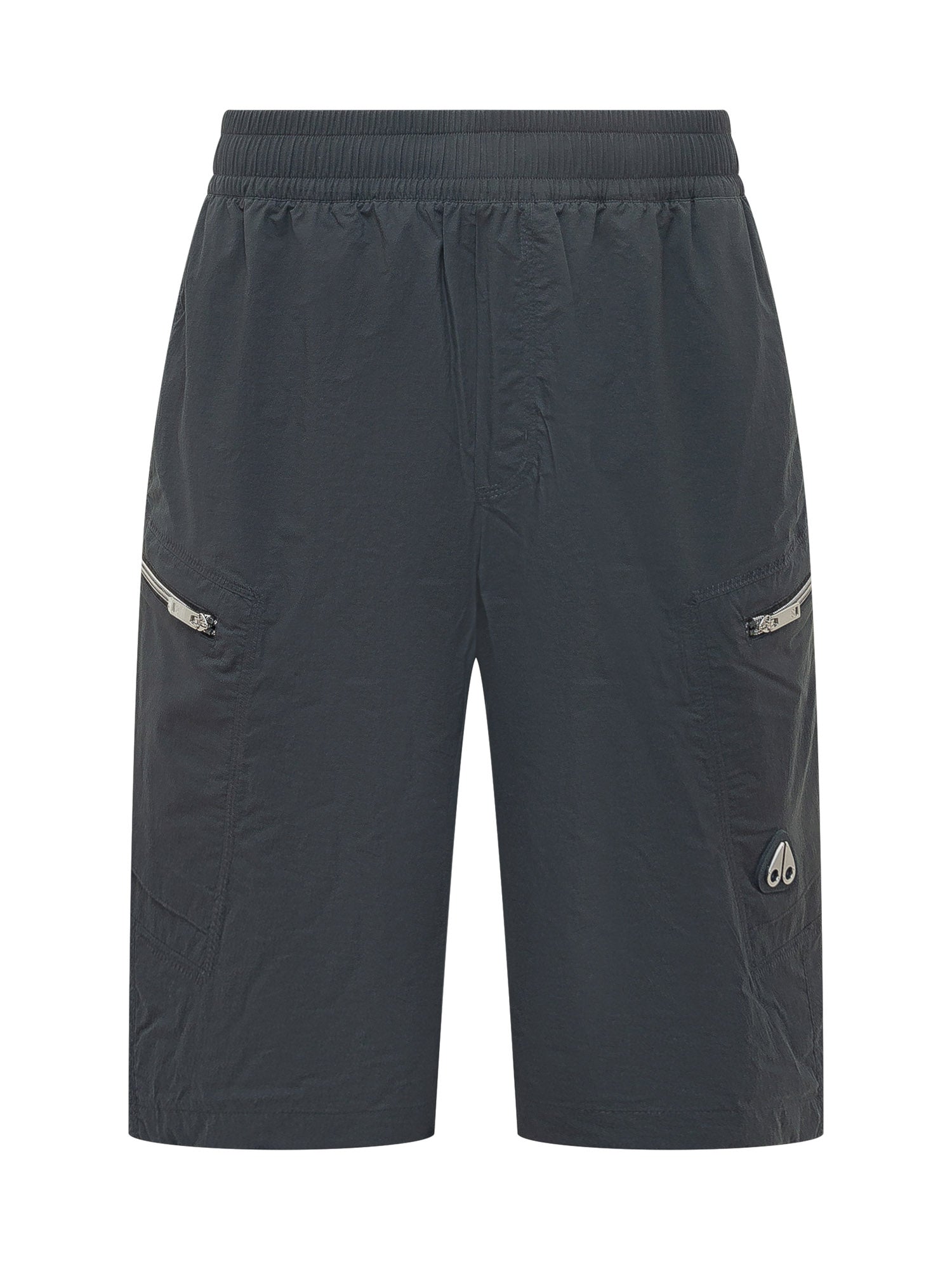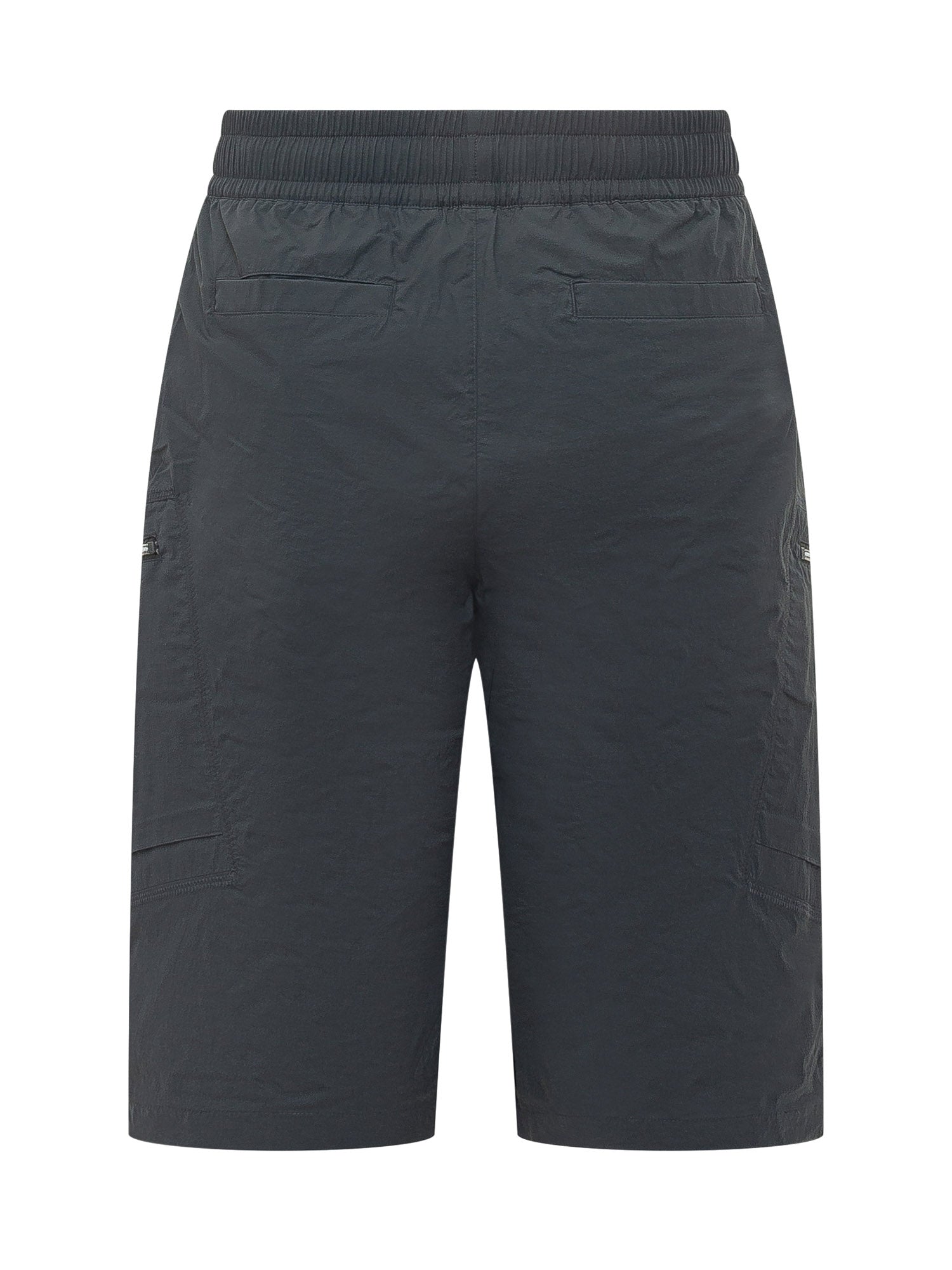Bermuda con vita elasticizzata e linea dritta. Modello cargo con tasche laterali con zip e tasche applicate. Design funzionale e dettagli tecnici per uno stile dinamico e contemporaneo.