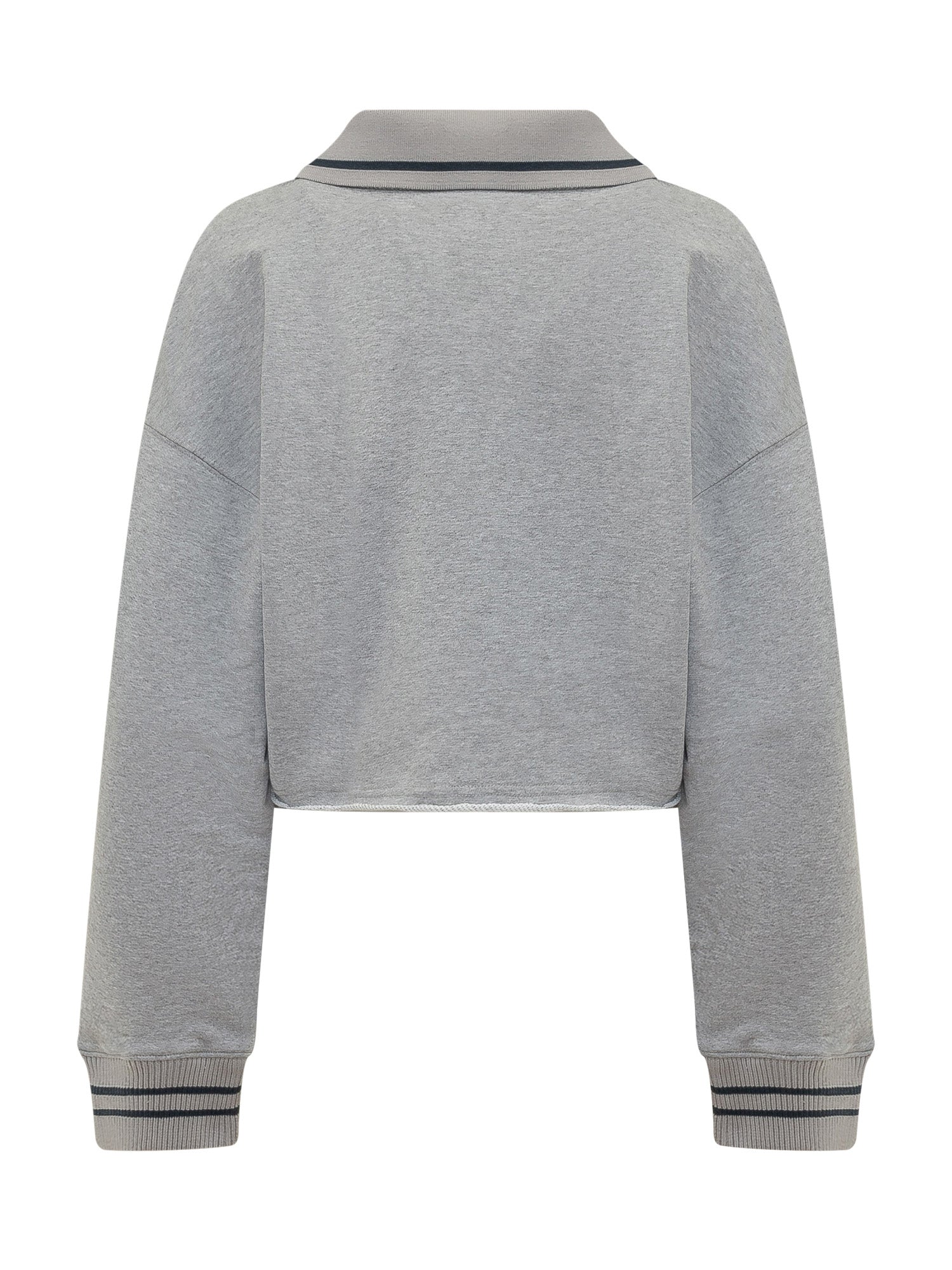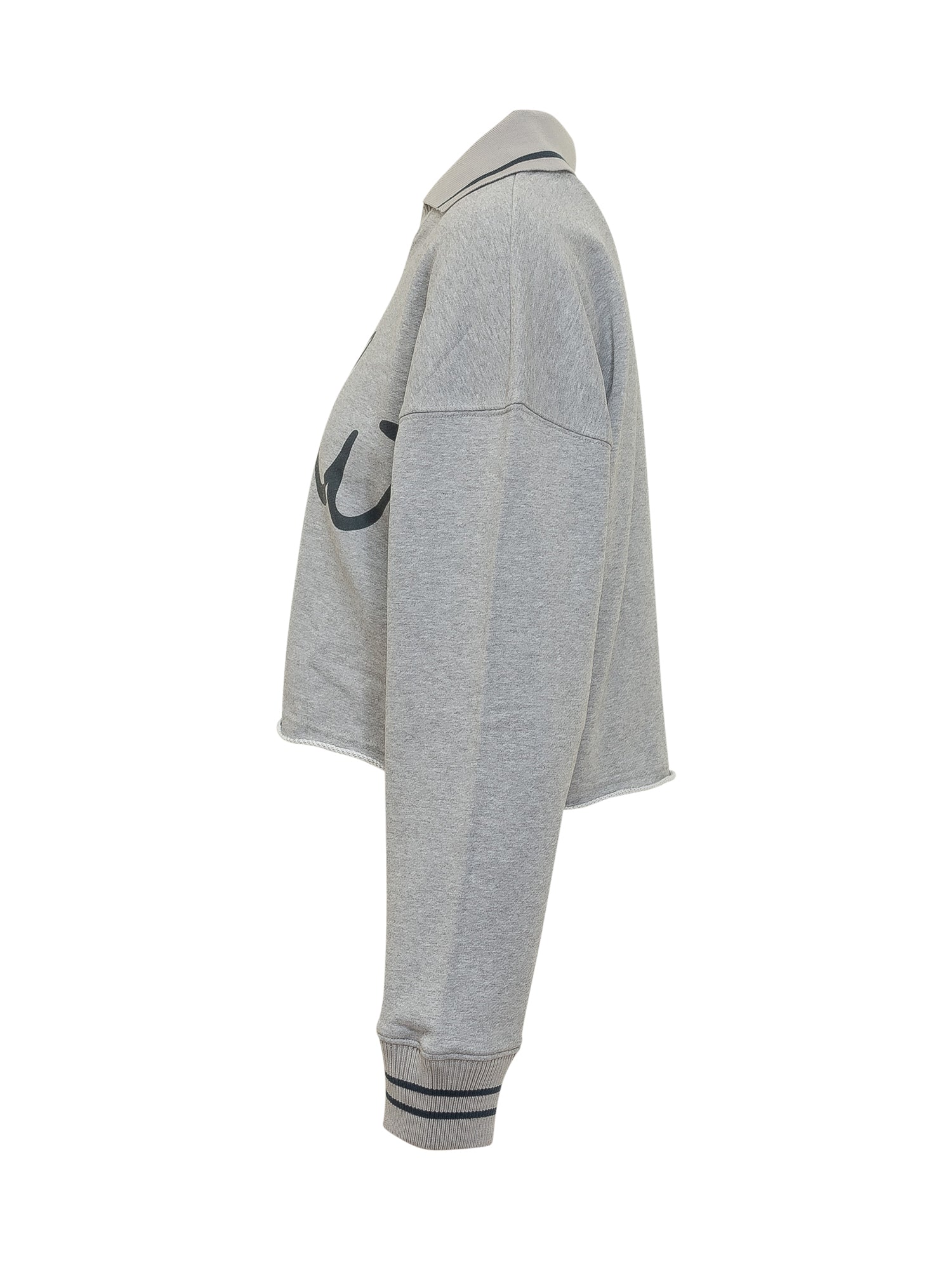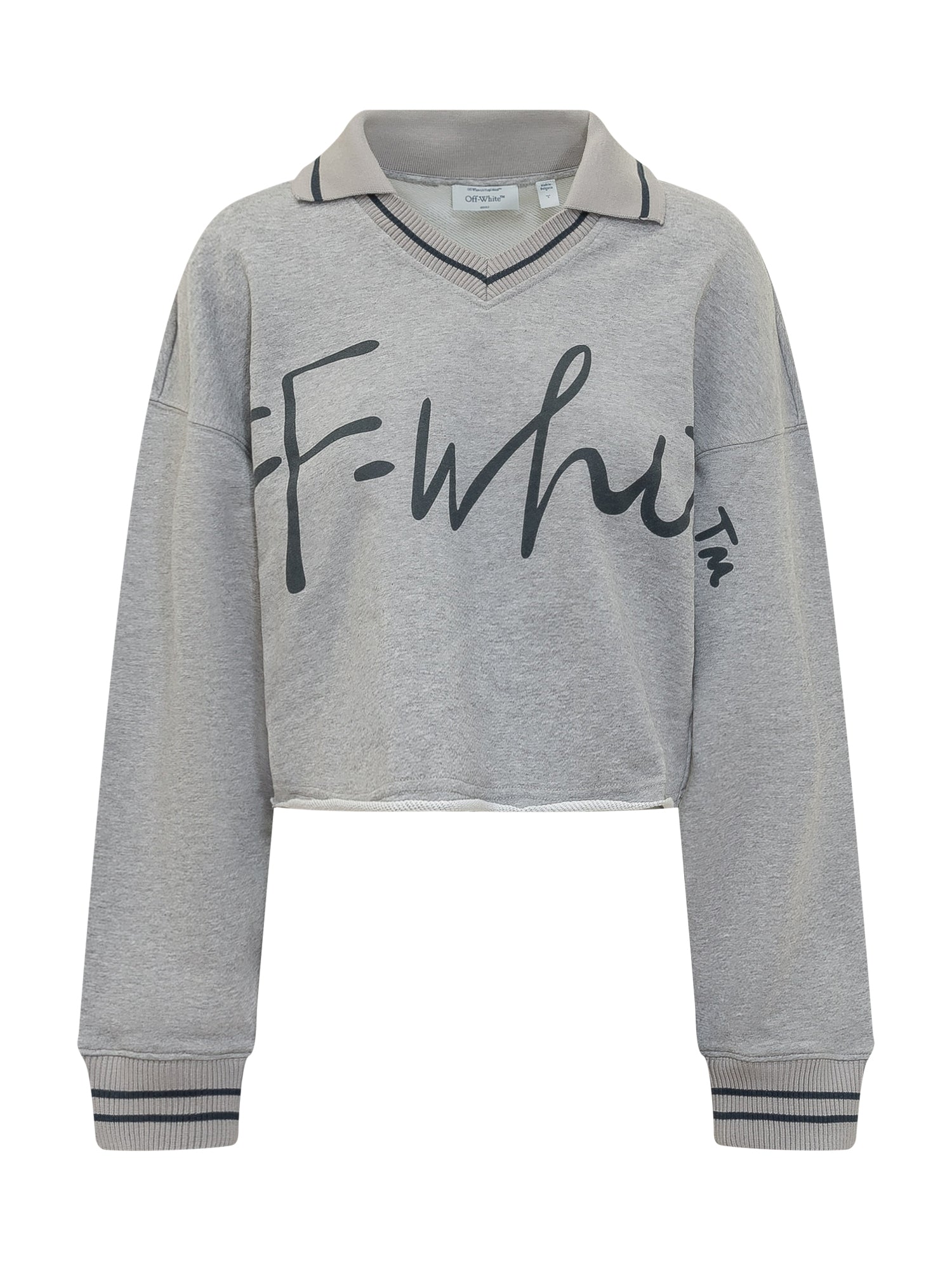 Felpa crop con maniche lunghe e scollo a V con colletto. Maxi logo script stampato sul davanti e polsini a costine. Vestibilità ampia e linea corta.