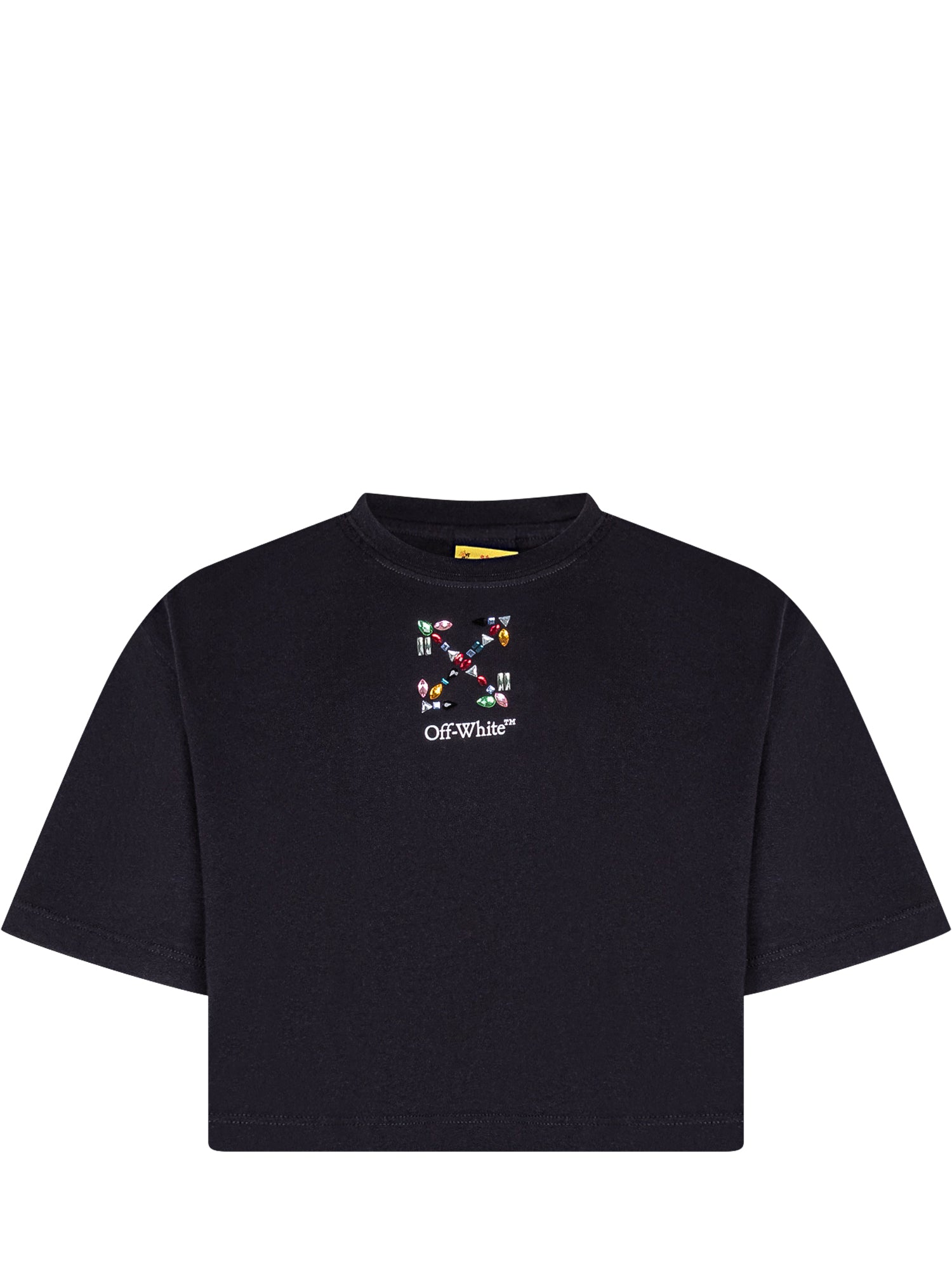 T-shirt a maniche corte con girocollo e vestibilità boxy. Stampa frontale con iconica grafica Arrow arricchita da dettagli effetto pietre colorate e logo Off-White™ sotto il motivo. Design distintivo e contemporaneo, ideale per un look streetwear ricercato.