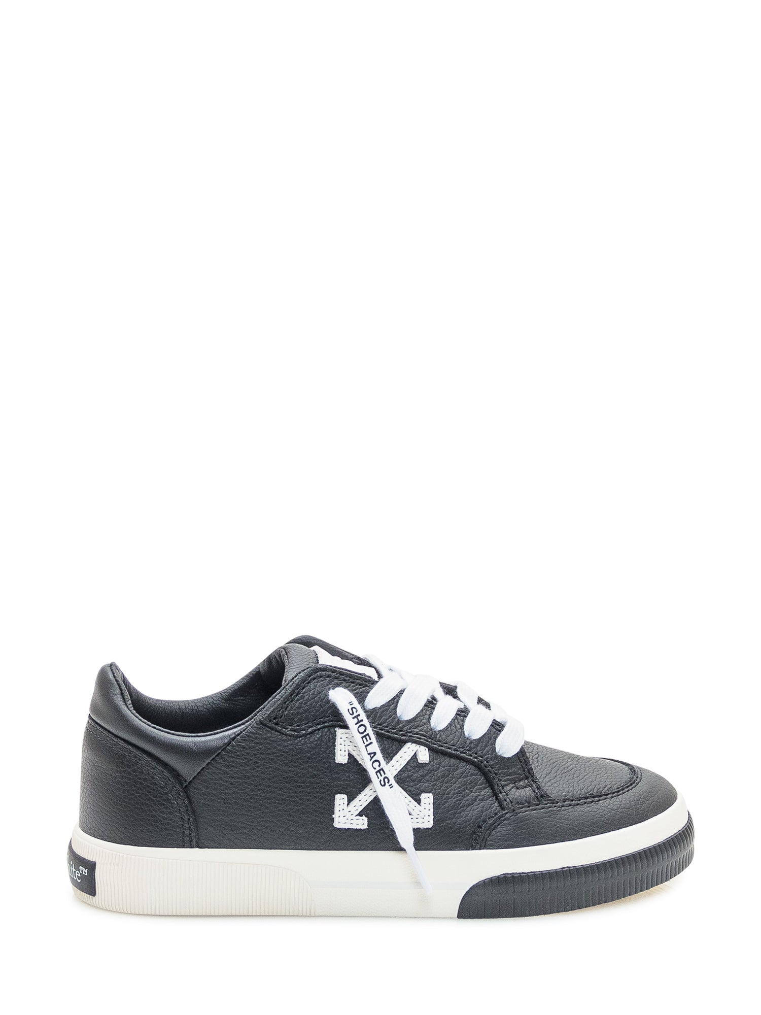 Sneakers Off-White in pelle nera con freccia bianca ricamata sul lato e lacci con scritta stampata