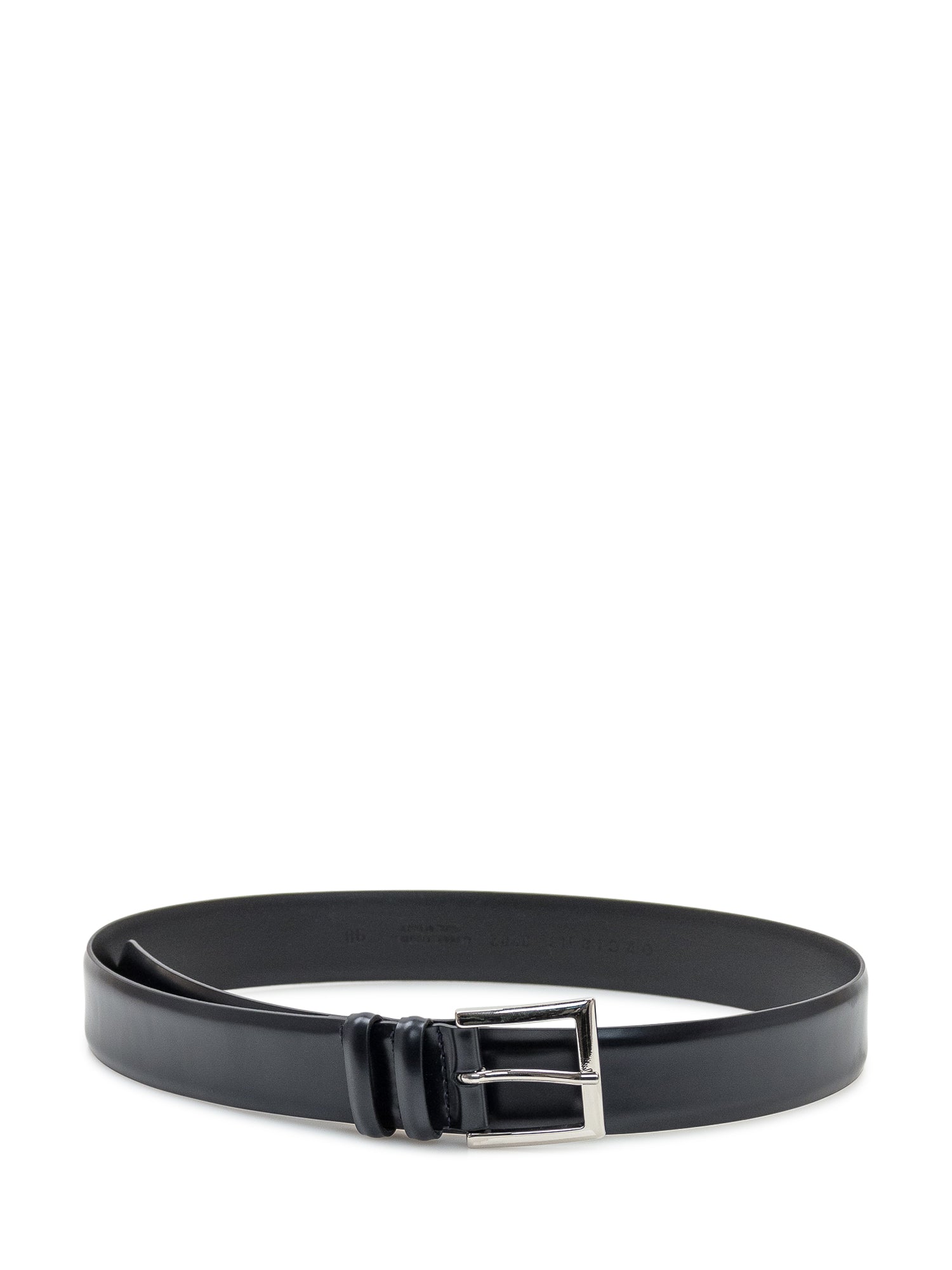 Cintura Orciani realizzata in pelle nera liscia con fibbia quadrata in metallo lucido.