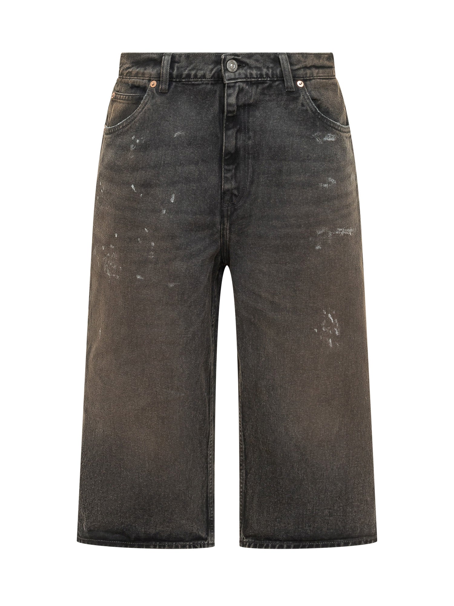 Jeans Capri Cut con chiusura frontale a bottone e zip. Modello a cinque tasche con passanti in vita e gamba ampia al polpaccio. Design contemporaneo per un look deciso e attuale.