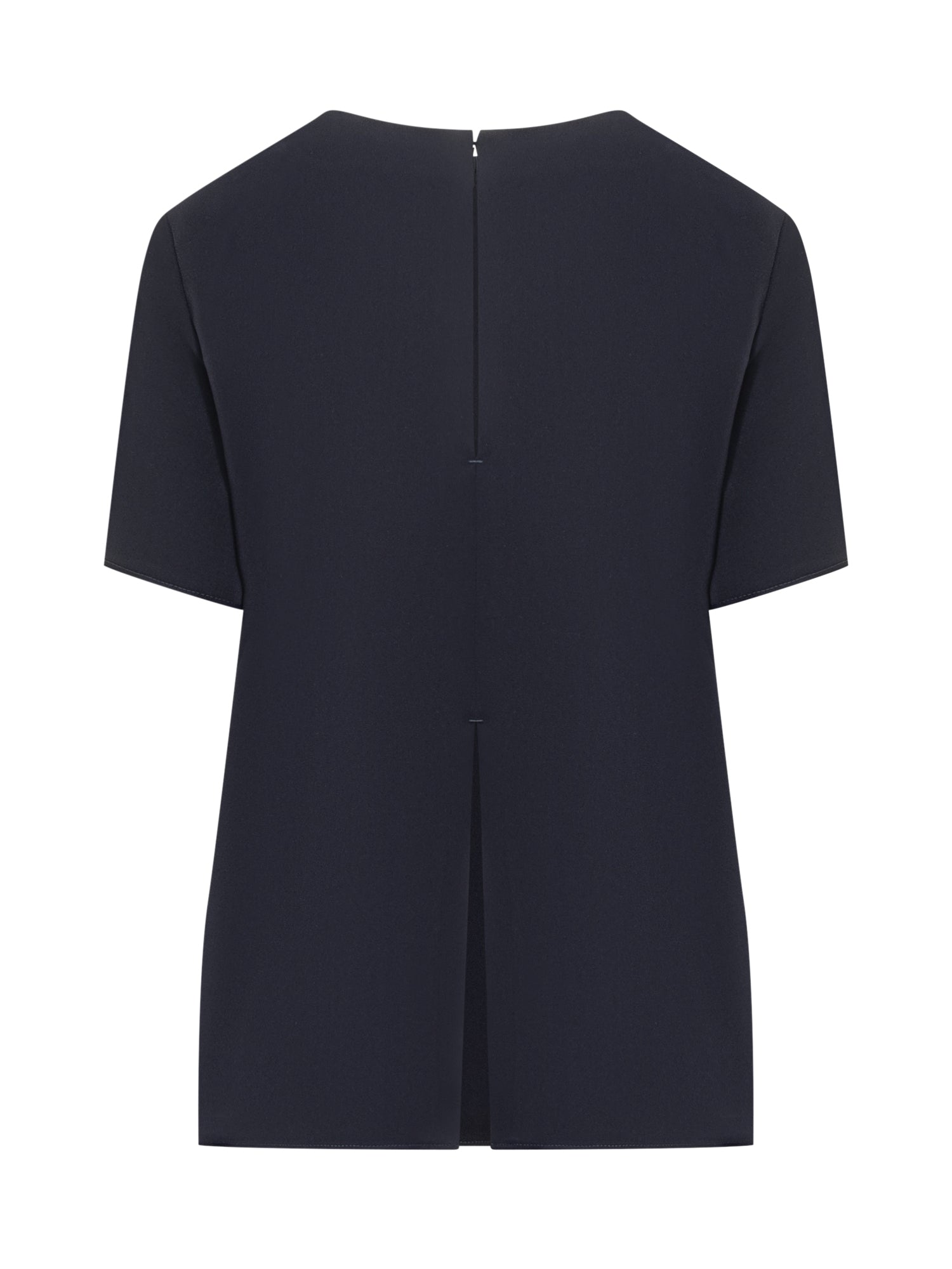 Scollo rotondo. Maniche corte. Chiusura con bottone sul retro.