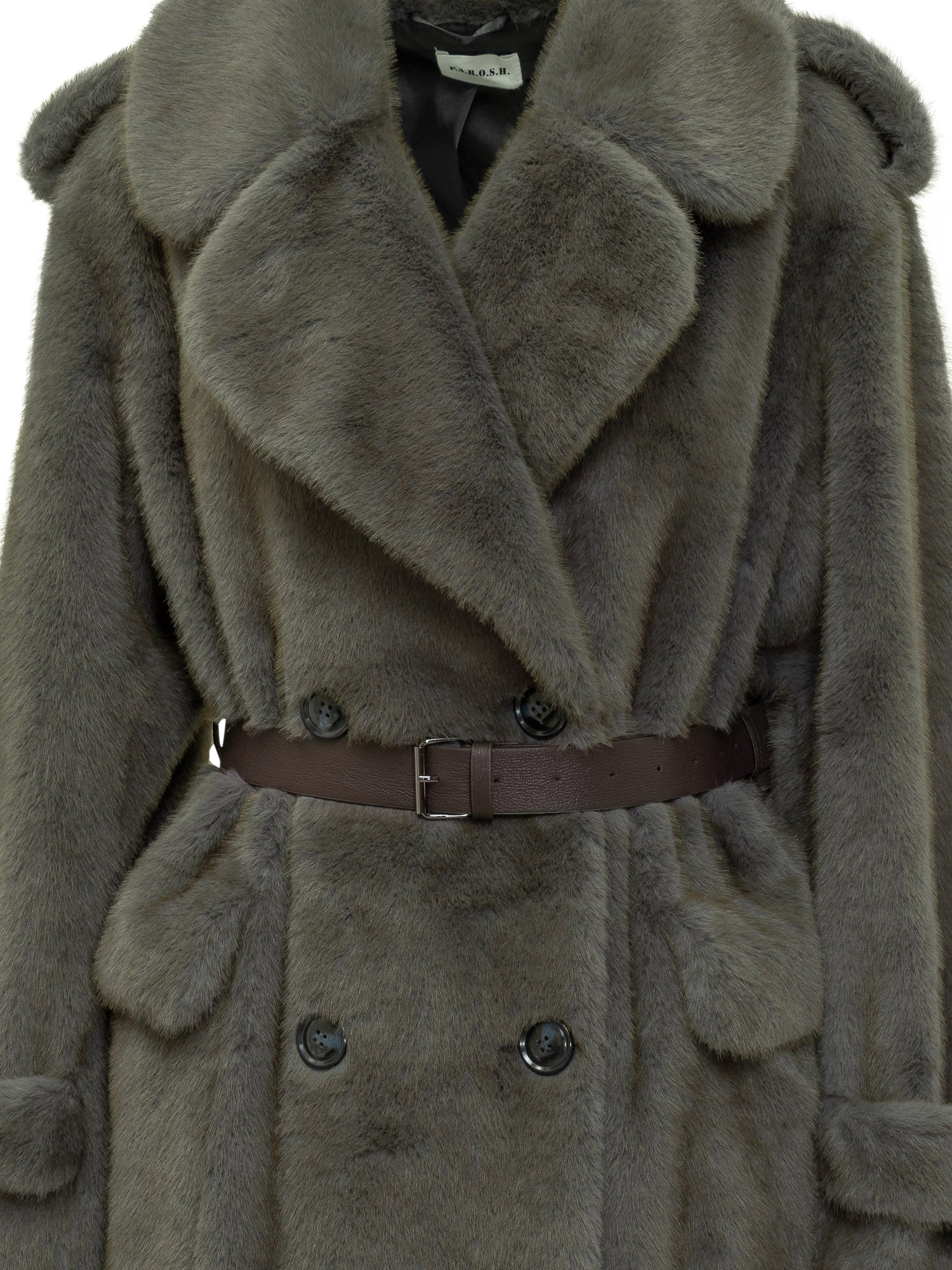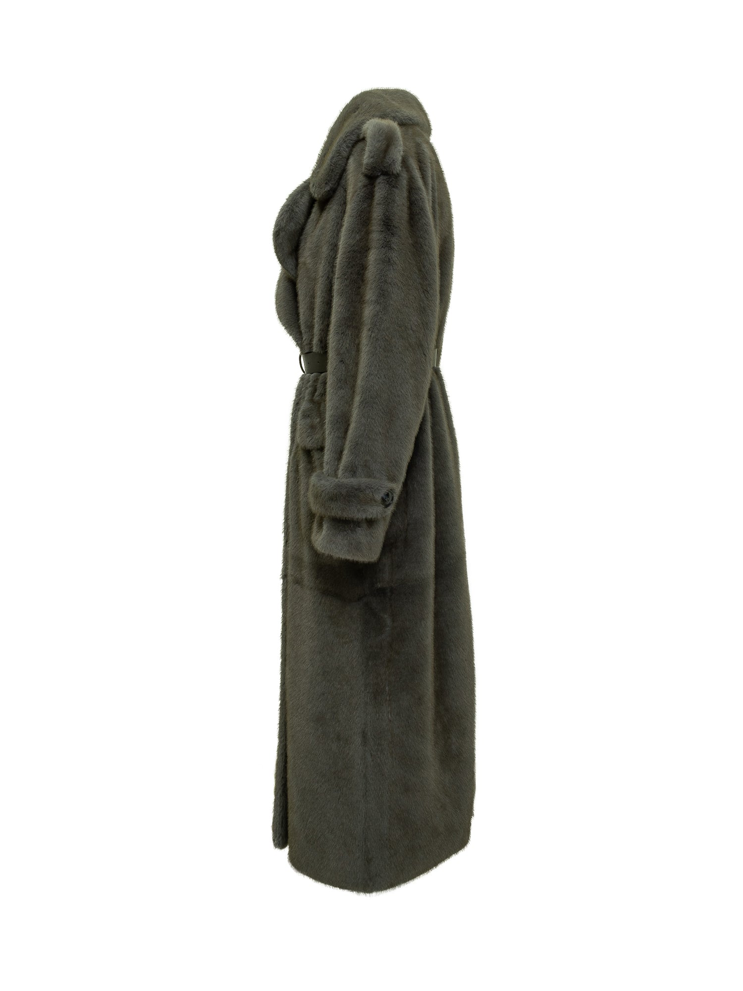 Cappotto Parosh in pelliccia grigia, lungo e sofisticato con revers ampi e cintura in vita.