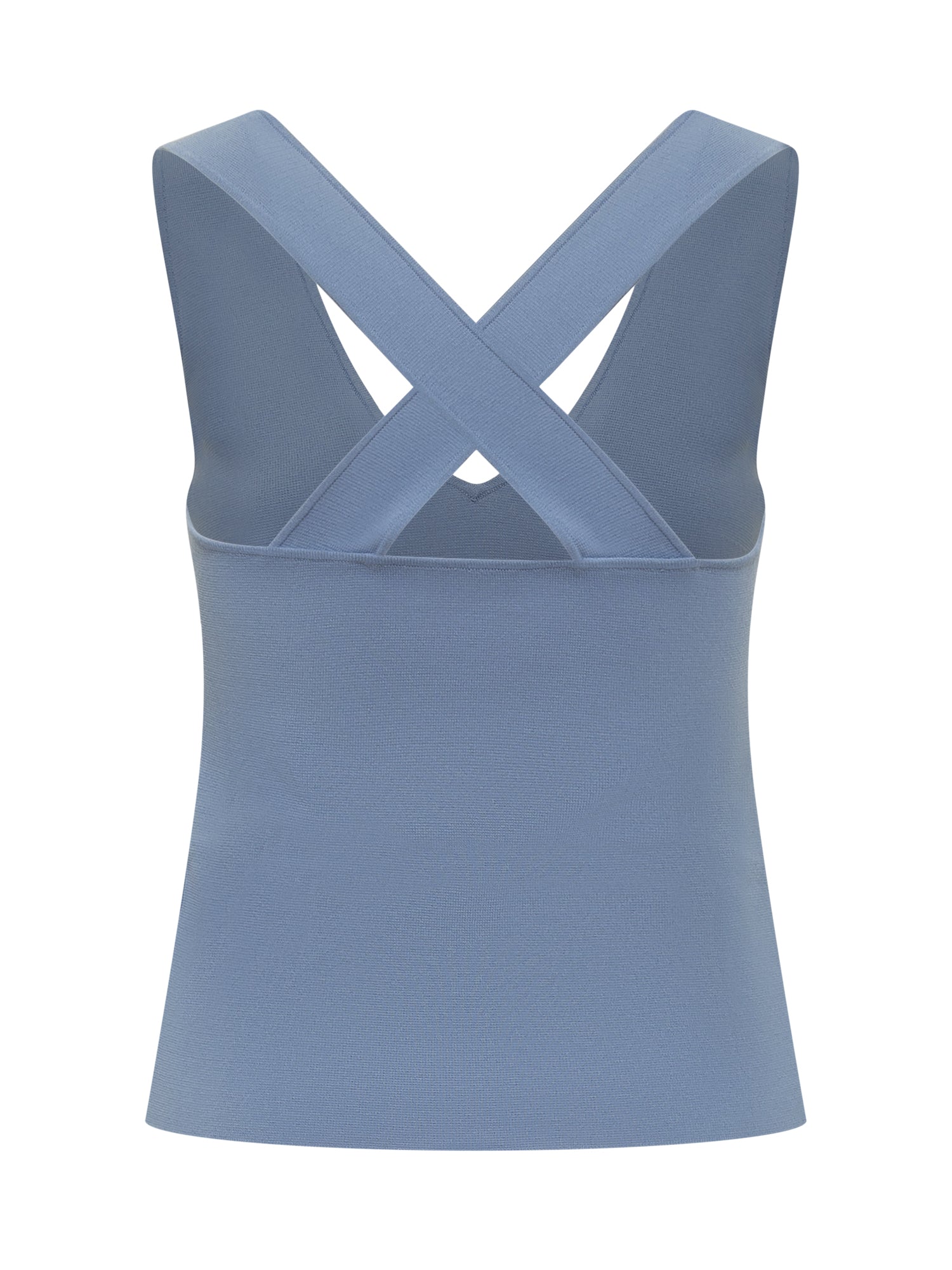 Top smanicato in misto viscosa. Scollo a V. Spalline incrociate sul retro.