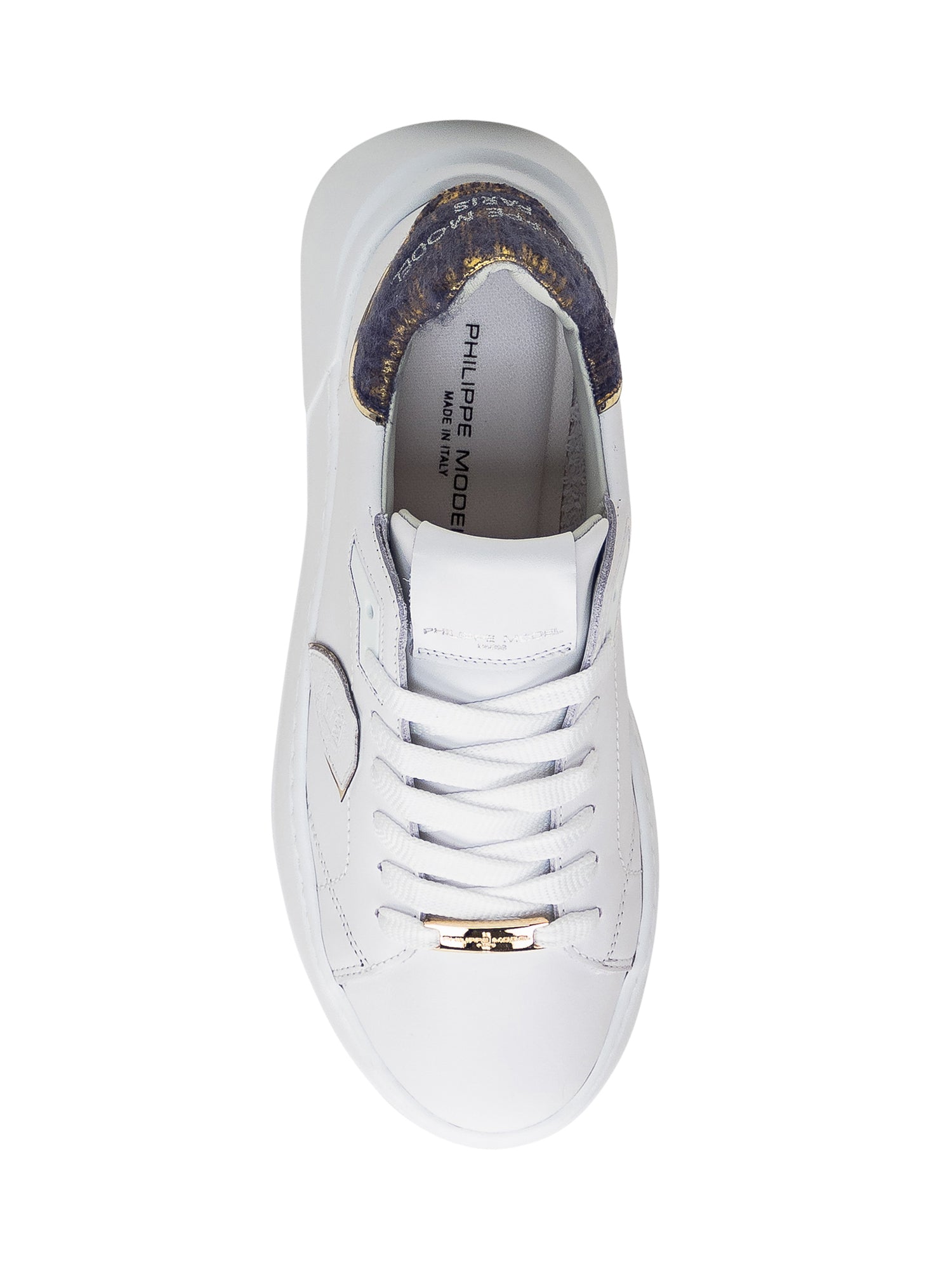 Sneaker bianca in pelle con platform. Chiusura con lacci. Tallone a contrasto con logo ricamato. Logo sulla linguetta. Scudetto laterale sul lato.