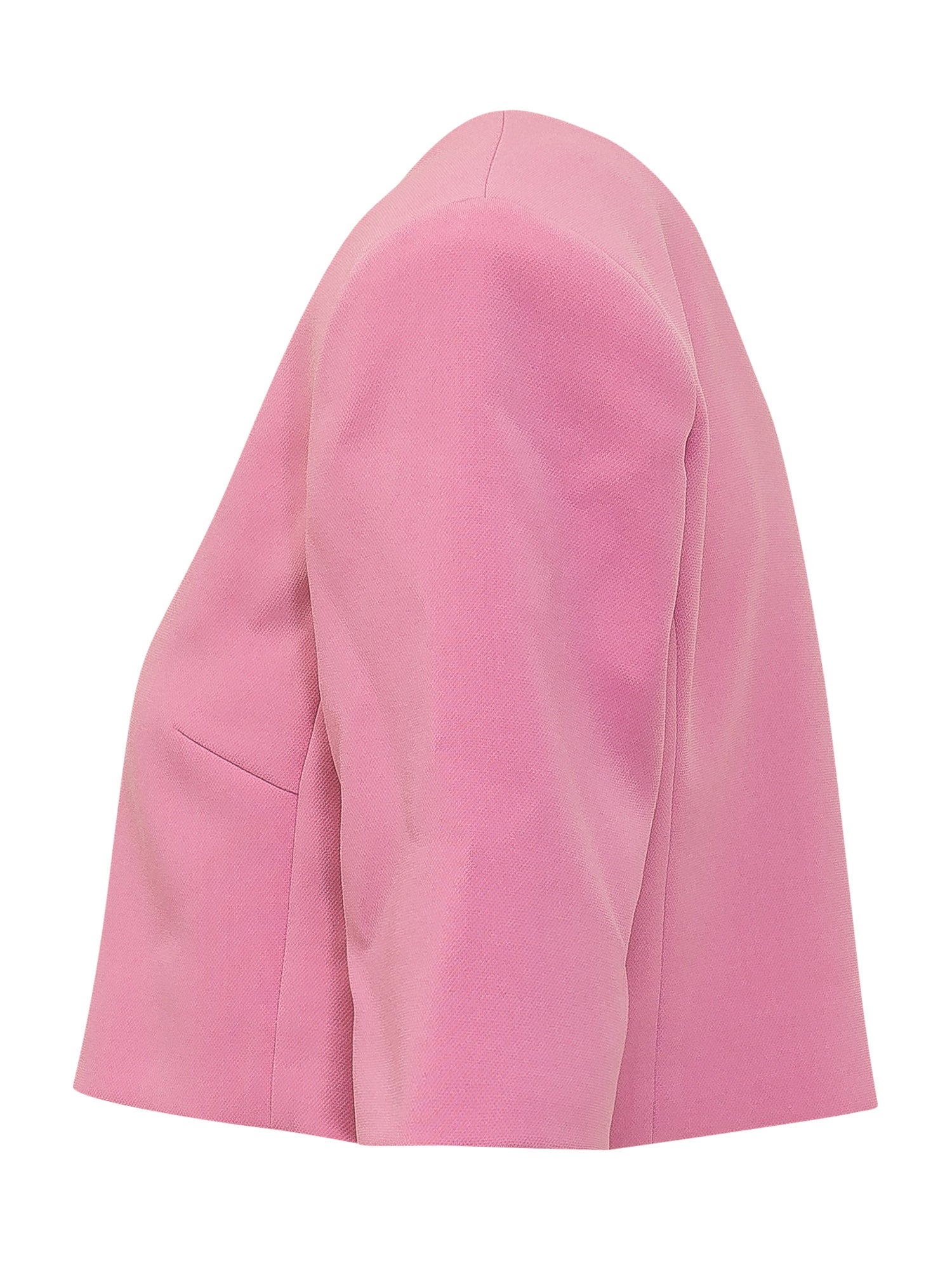 Spencer corto da donna con girocollo, chiusura con bottoni, maniche corte ampie.