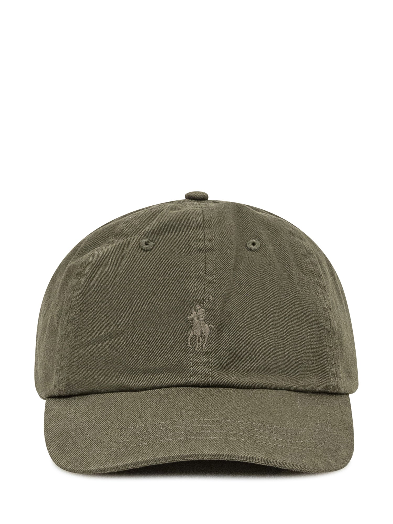 Cappellino Polo Ralph Lauren in cotone verde militare, con logo ricamato tono su tono sul frontale.