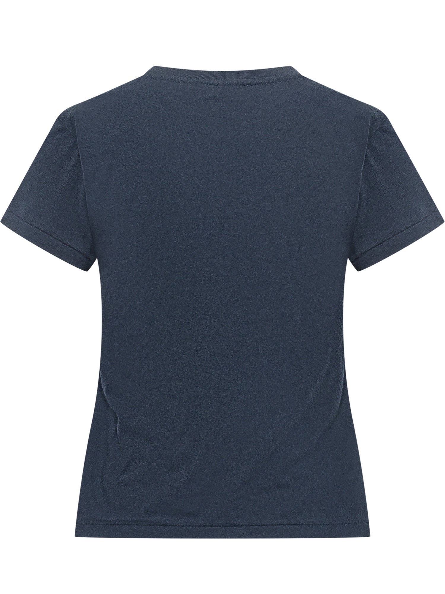 T-shirt da donna in maglia leggera, girocollo e maniche corte, vestibilita regolare, dettaglio ricamo sul petto.