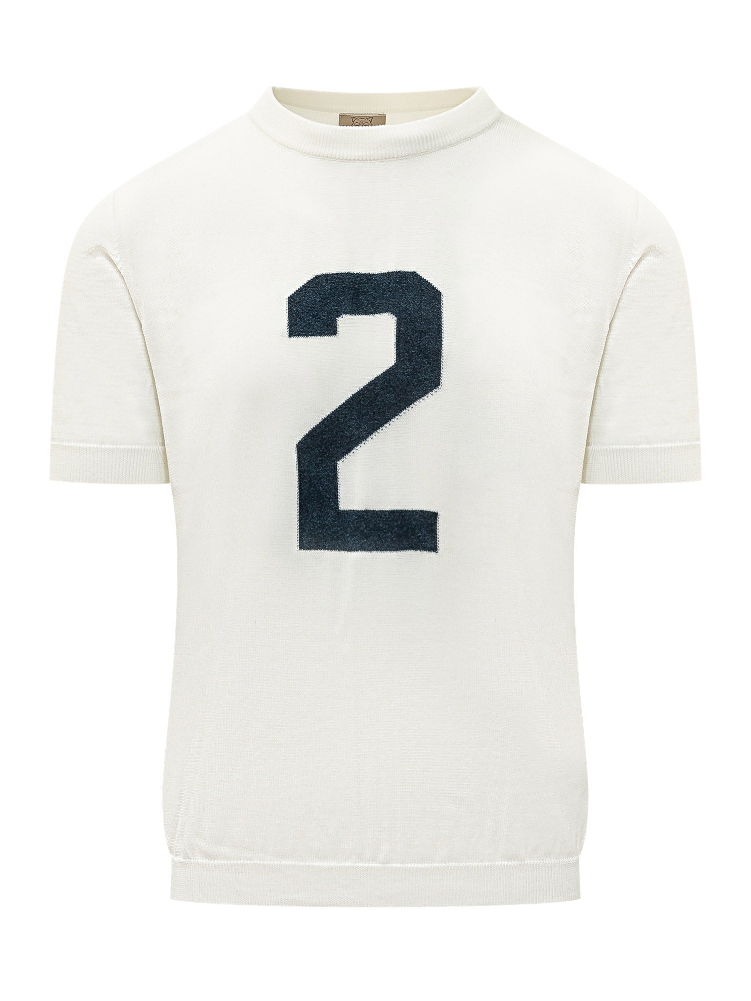 T-shirt a maniche corte con scollo tondo e numero a contrasto applicato sul davanti. Fondo e maniche con finiture a costine e linea regolare, ideale per look sportivi e contemporanei.
