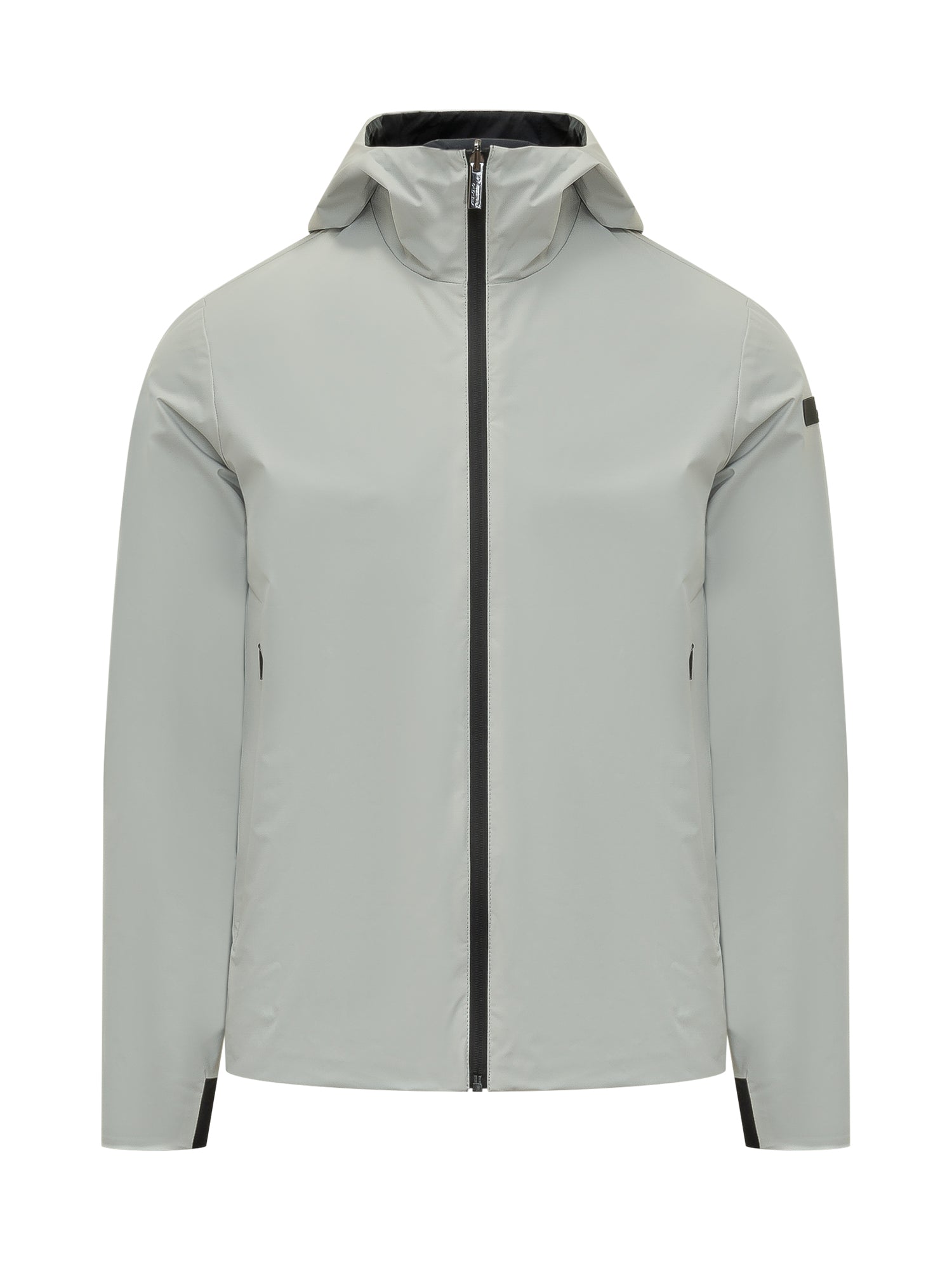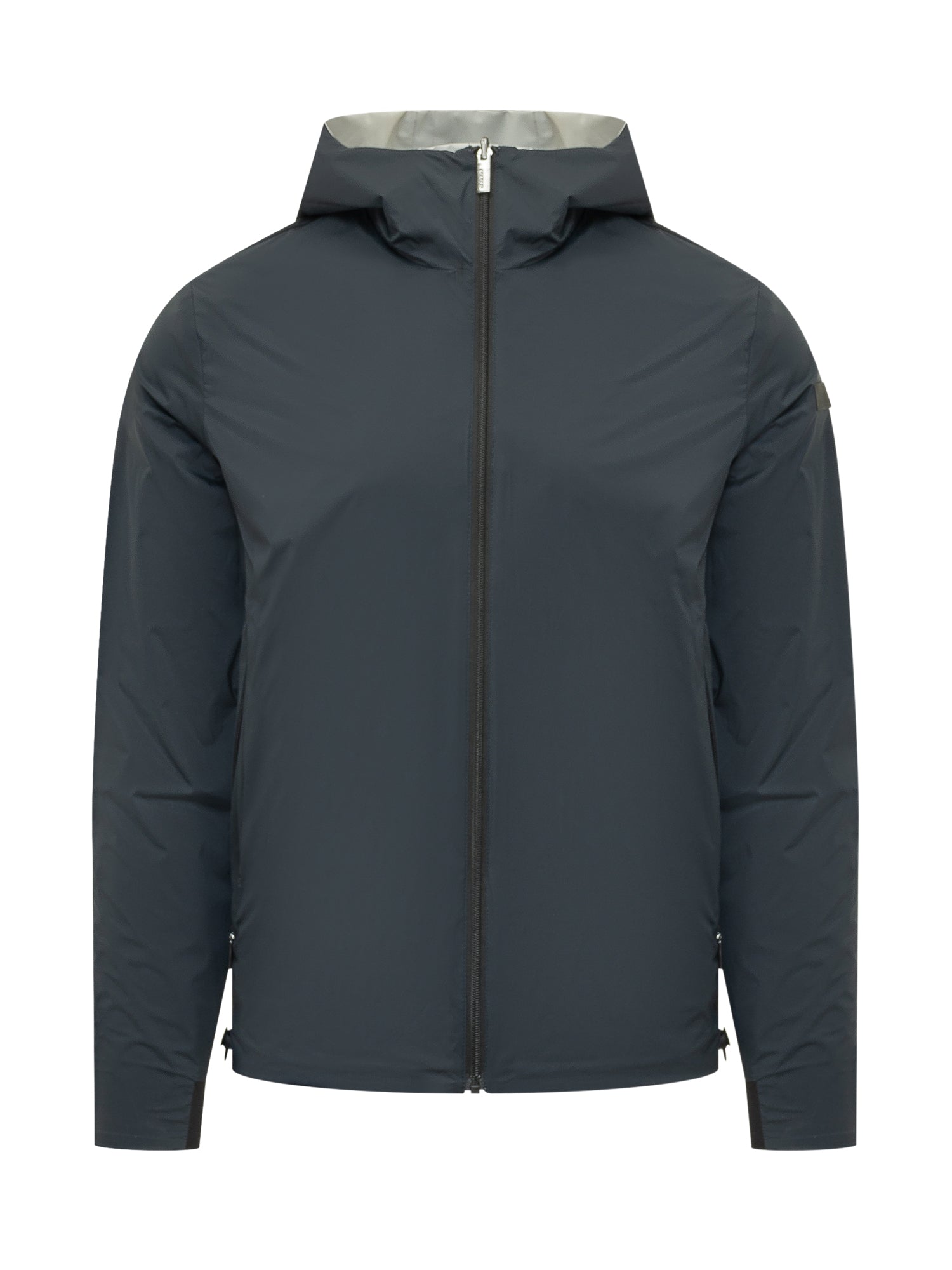 Giacca con chiusura frontale a zip e cappuccio integrato. Maniche lunghe e tasche laterali con zip. Struttura lineare con dettagli a contrasto sui polsi. Design funzionale per uso quotidiano.