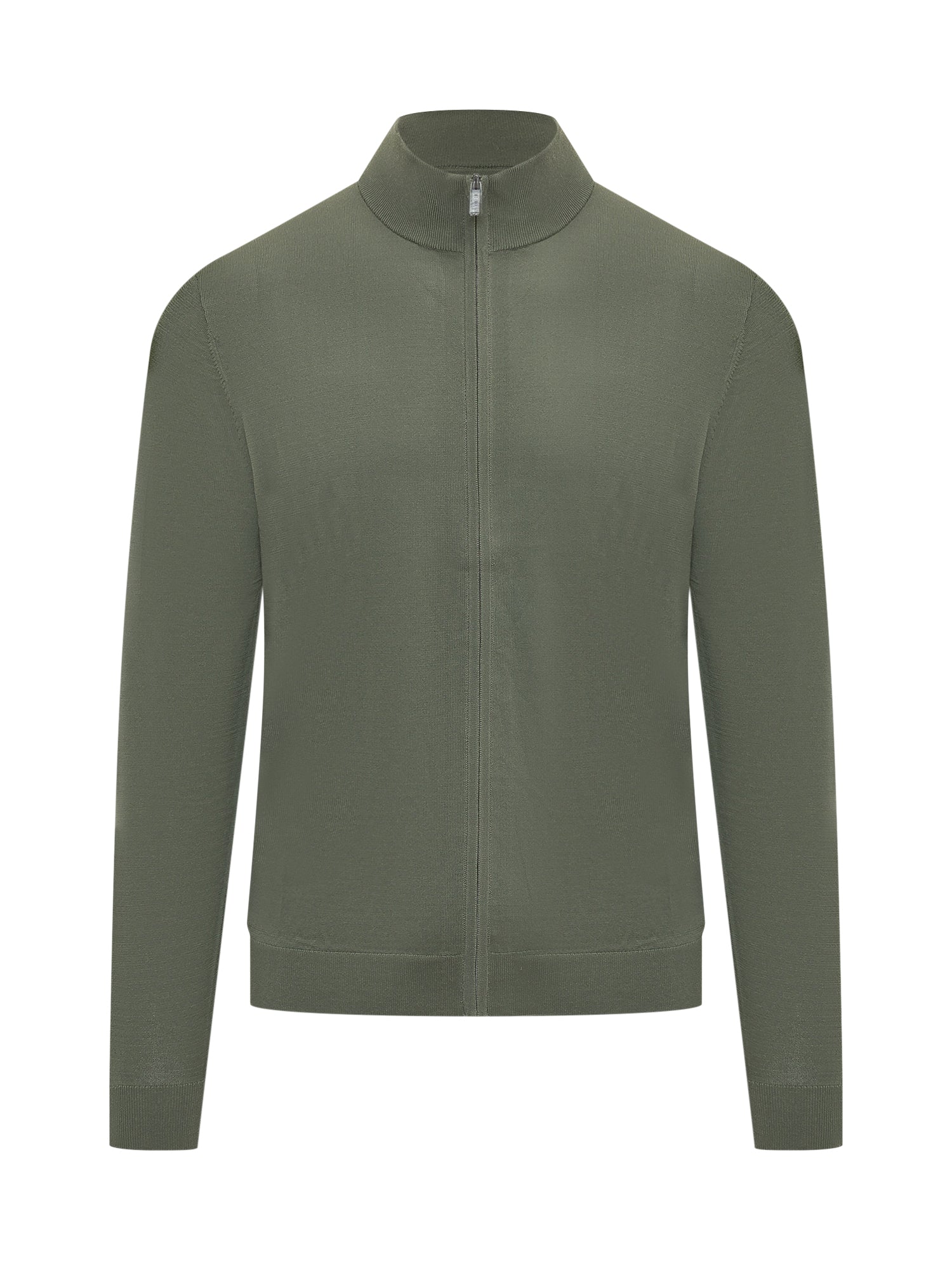 Maglia con chiusura frontale a zip e collo alto. Maniche lunghe con polsini e fondo rifiniti. Linea regolare e design essenziale adatto a look quotidiani.