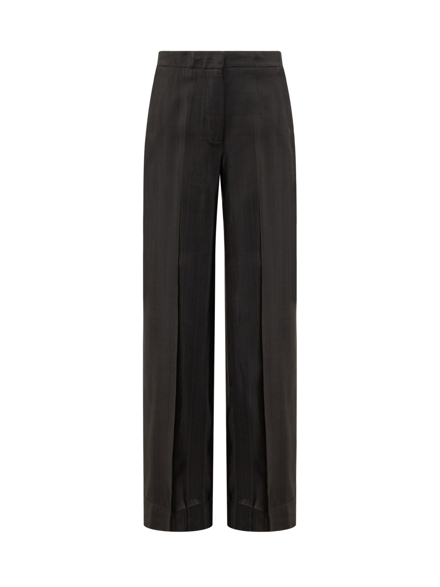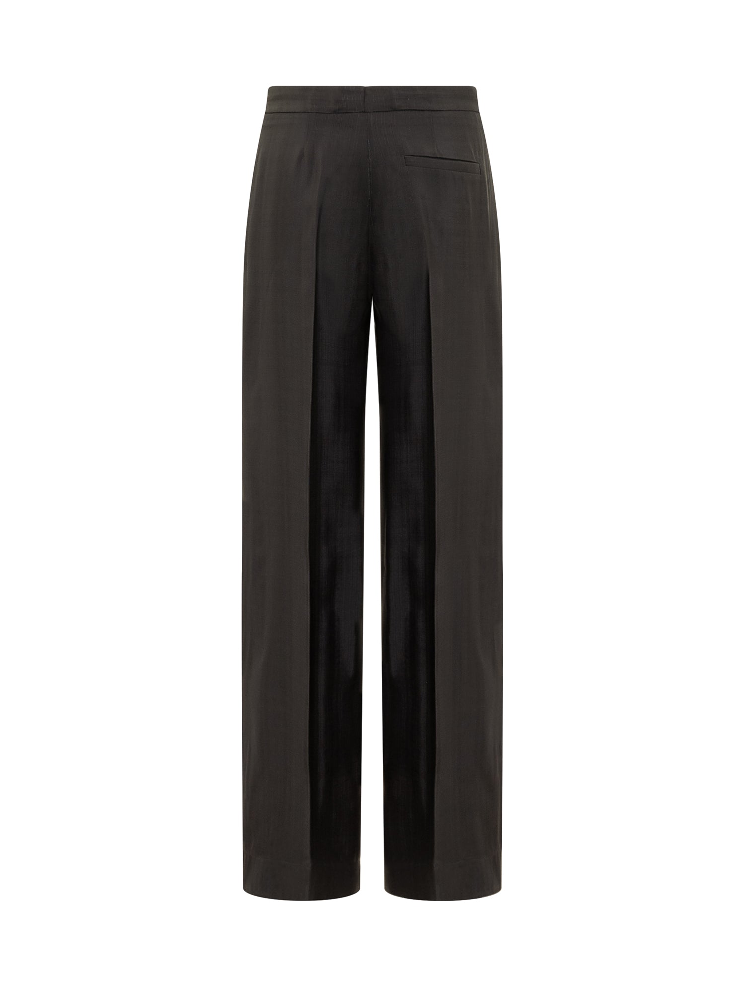 Pantaloni lunghi a gamba ampia. Chiusura con zip e bottone. Due tasche laterali. Una tasca a filetto sul retro. Piega stirata. Motivo a quadri tartan.