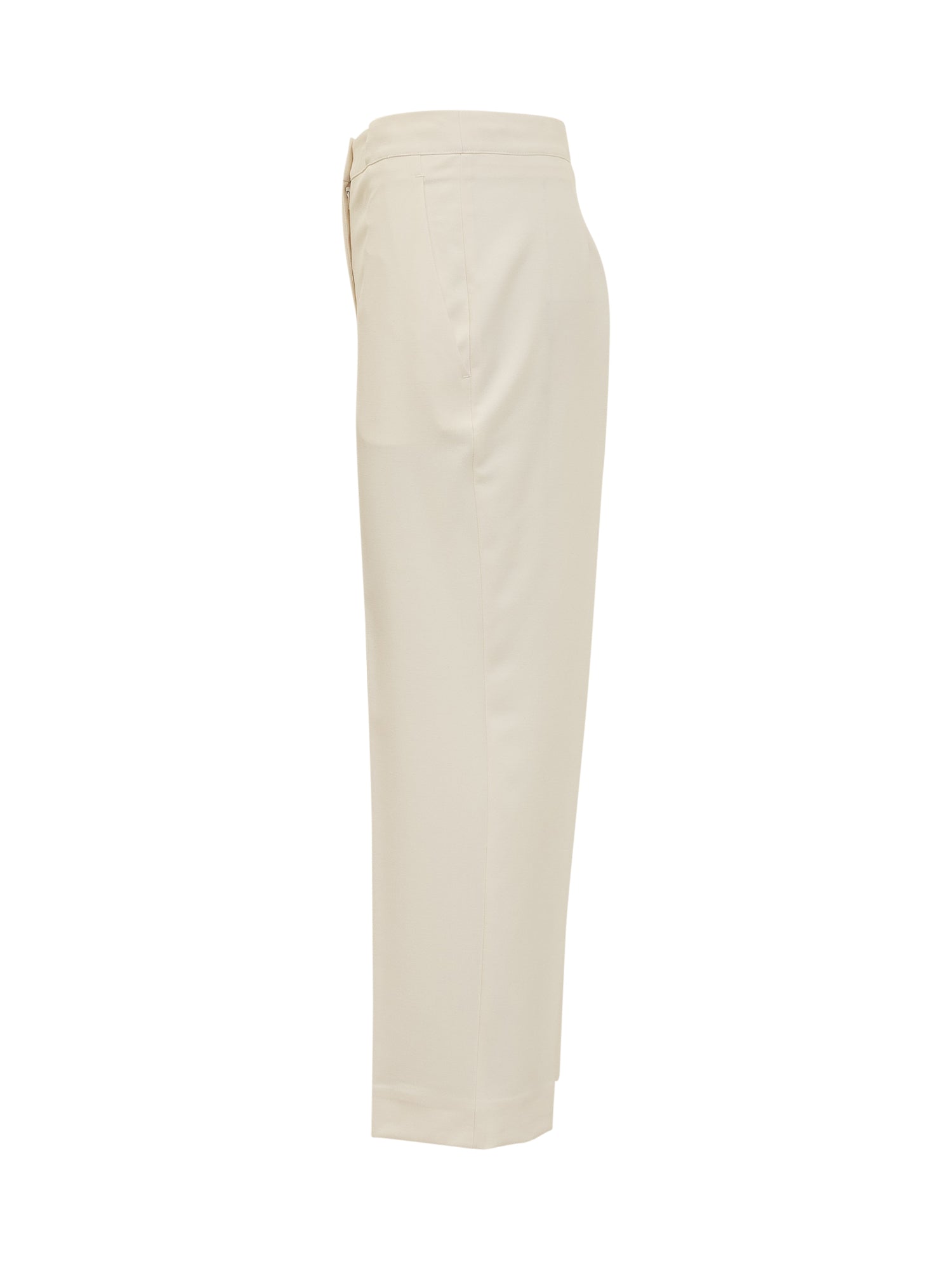 Pantaloni lunghi. Chiusura con zip e gancino. Due tasche laterali. Una tasca a filetto sul retro. Piega stirata. Taglio sartoriale. Taglio crop. Vita alta.
