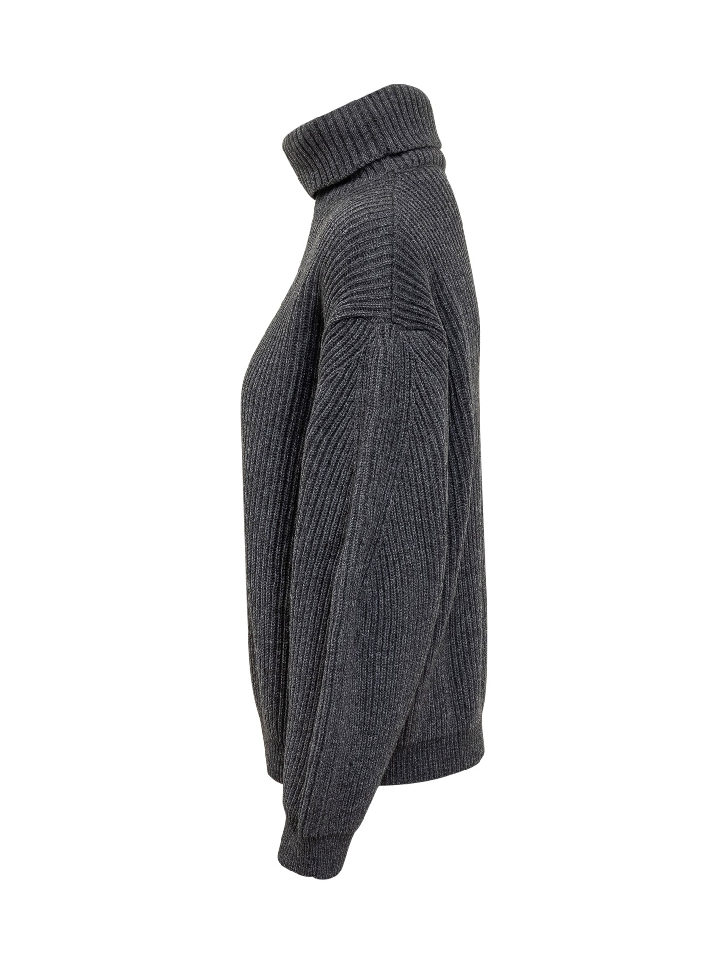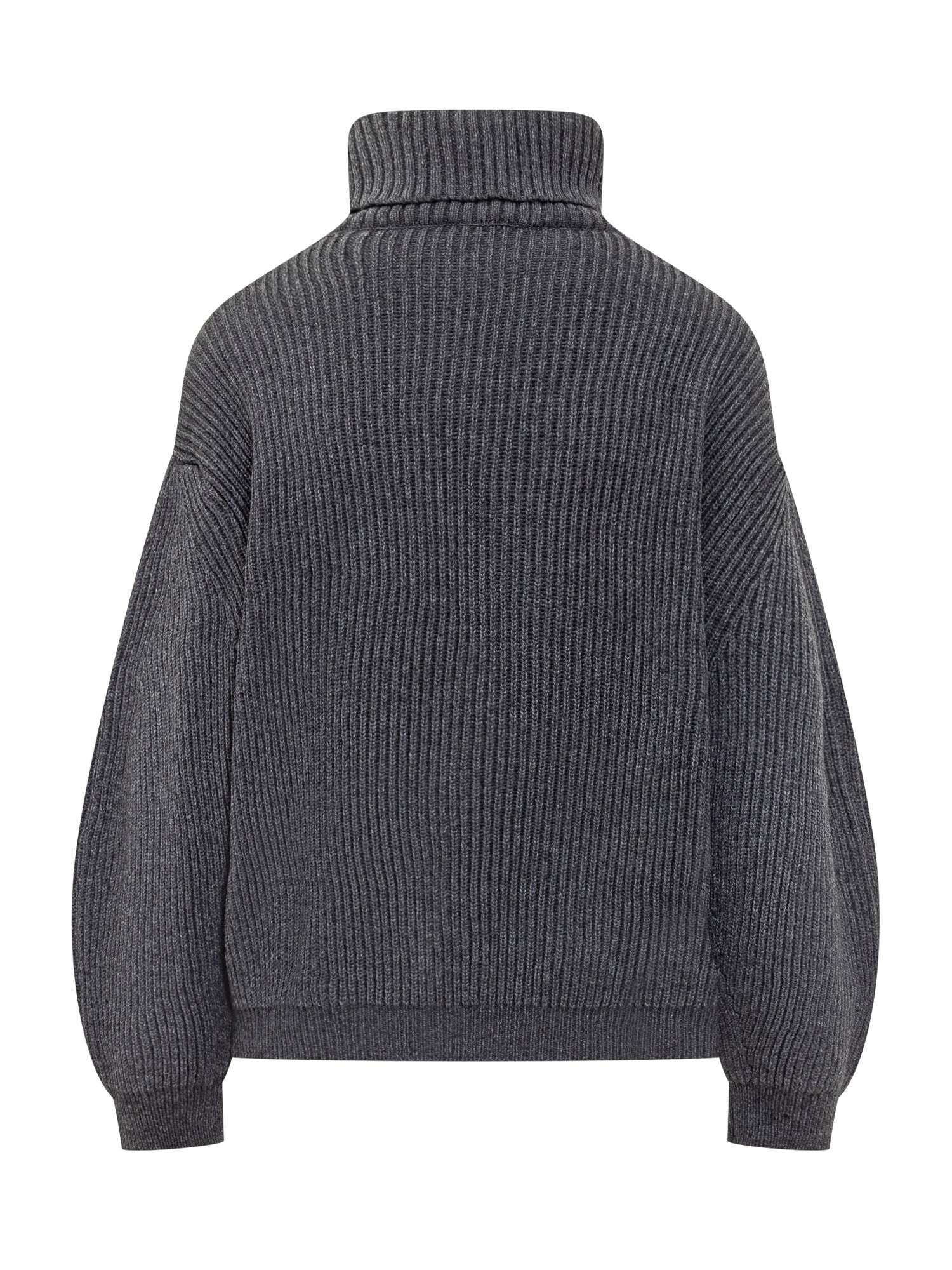 Maglione Semicouture in lana a costine con collo alto e maniche voluminose. Un capo caldo e versatile.