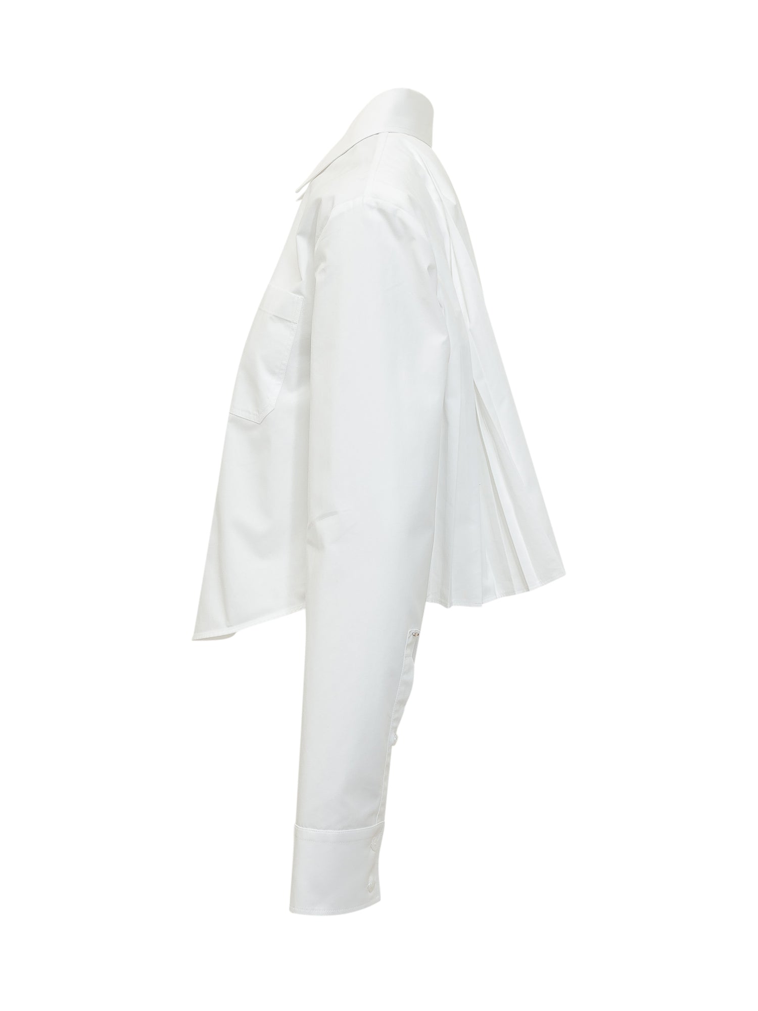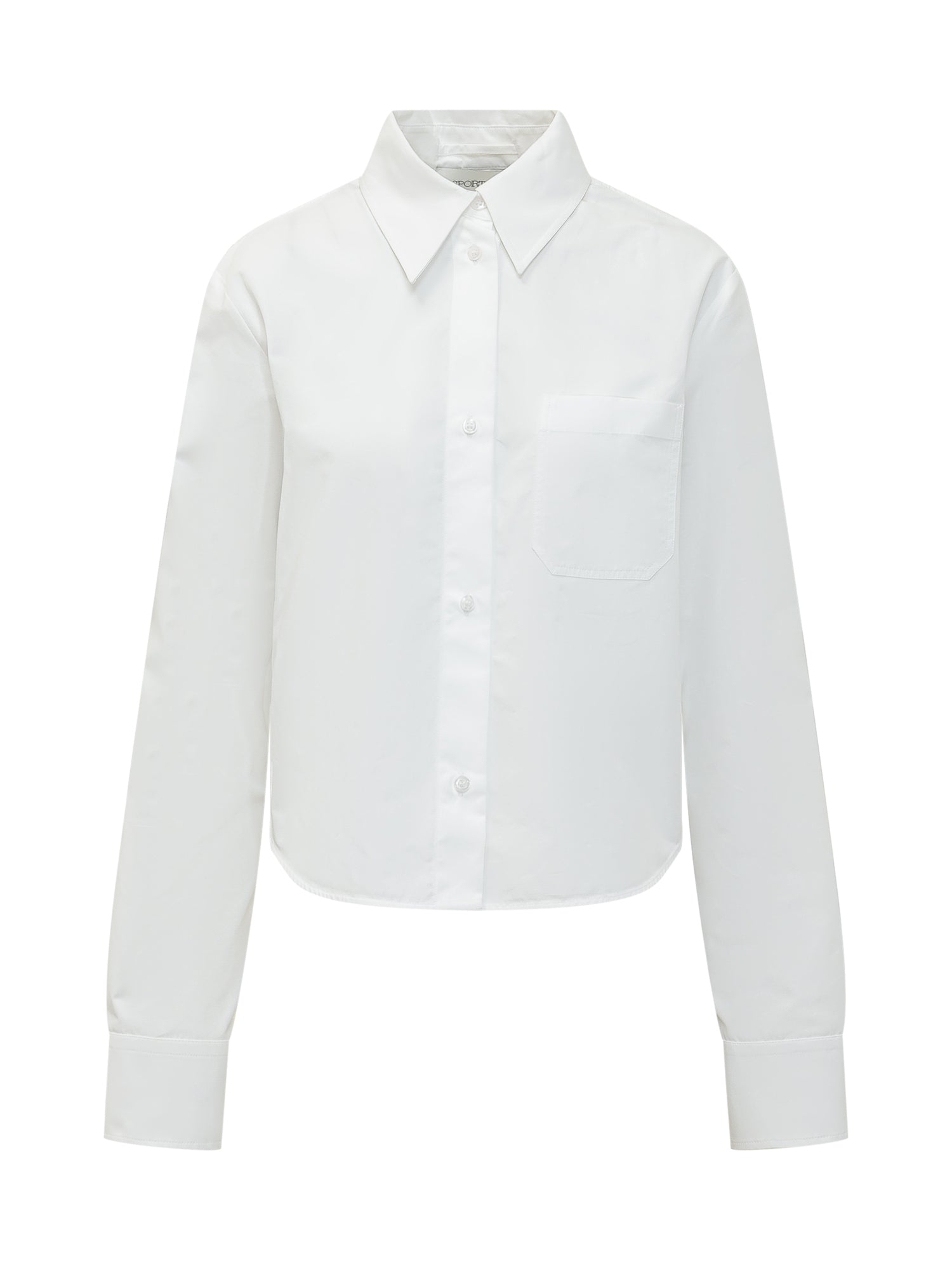 Camicia con colletto classico e chiusura frontale con bottoni. Maniche lunghe con polsini e tasca applicata sul petto. Linea regolare e design pulito adatto a look formali e contemporanei.