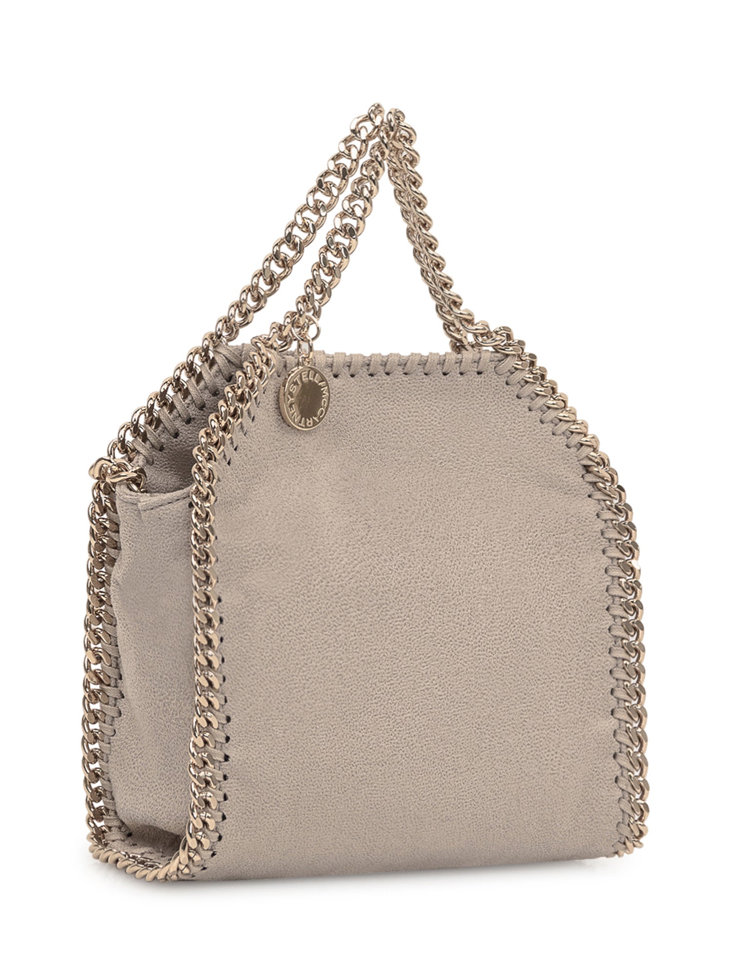 Borsa Falabella in formato mini con iconica catena metallica e profili cuciti. Chiusura superiore e design compatto.