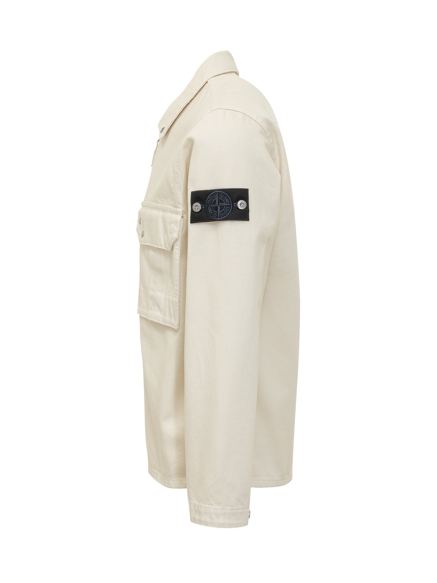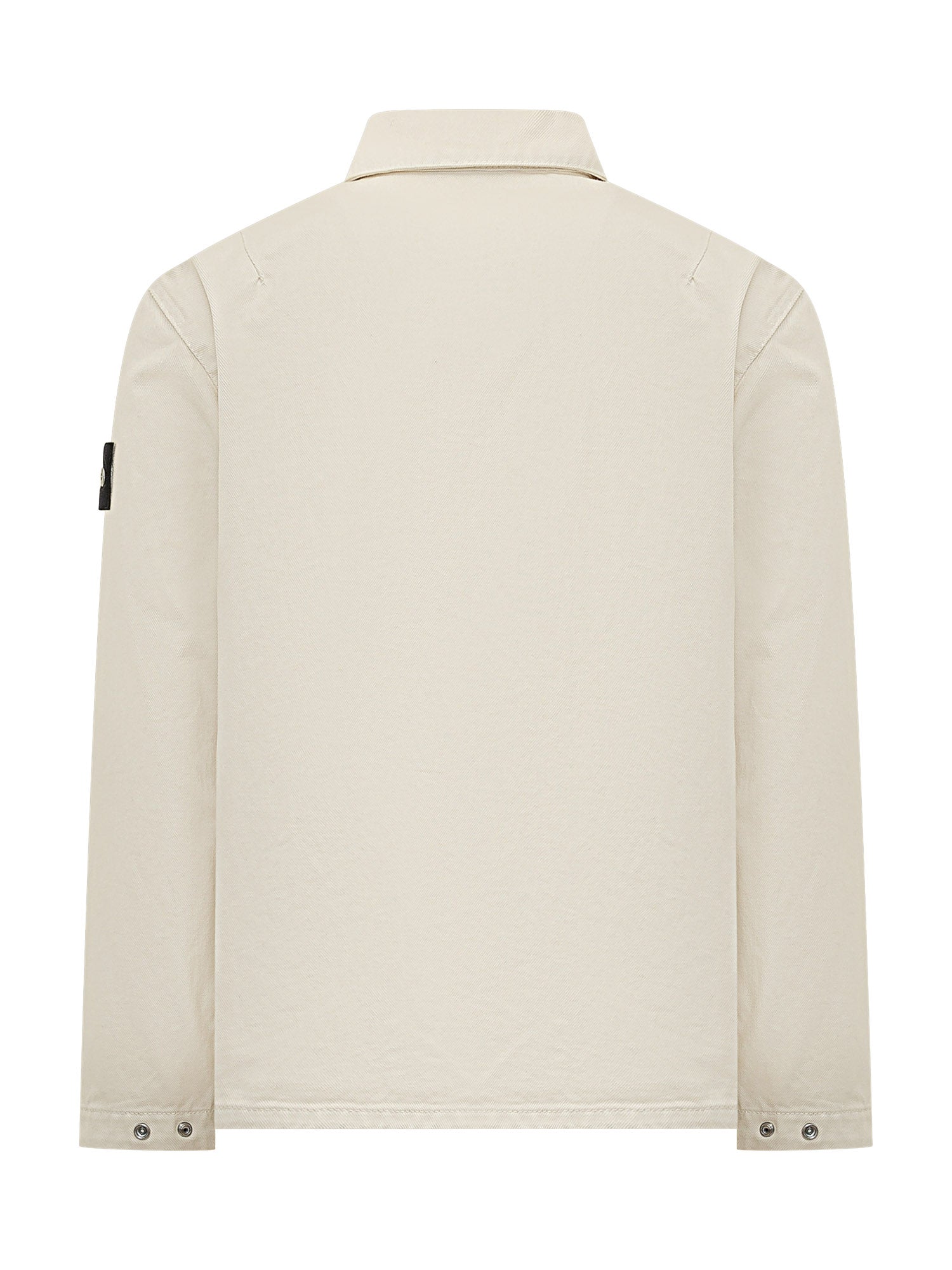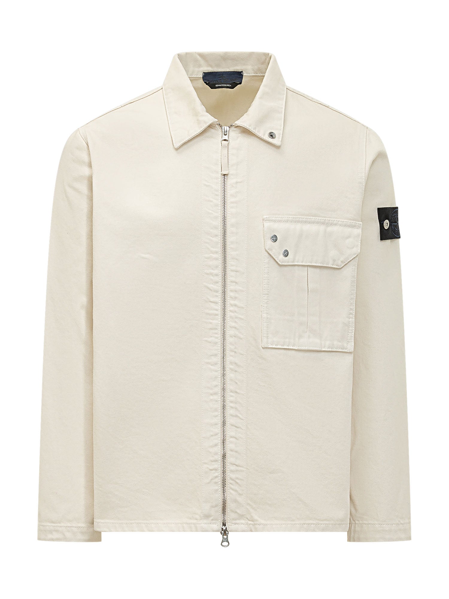 Camicia a maniche lunghe con colletto classico e chiusura frontale con zip. Presenta tasca applicata sul petto con patta e bottoni e logo applicato sulla manica. Struttura lineare adatta a look contemporanei.