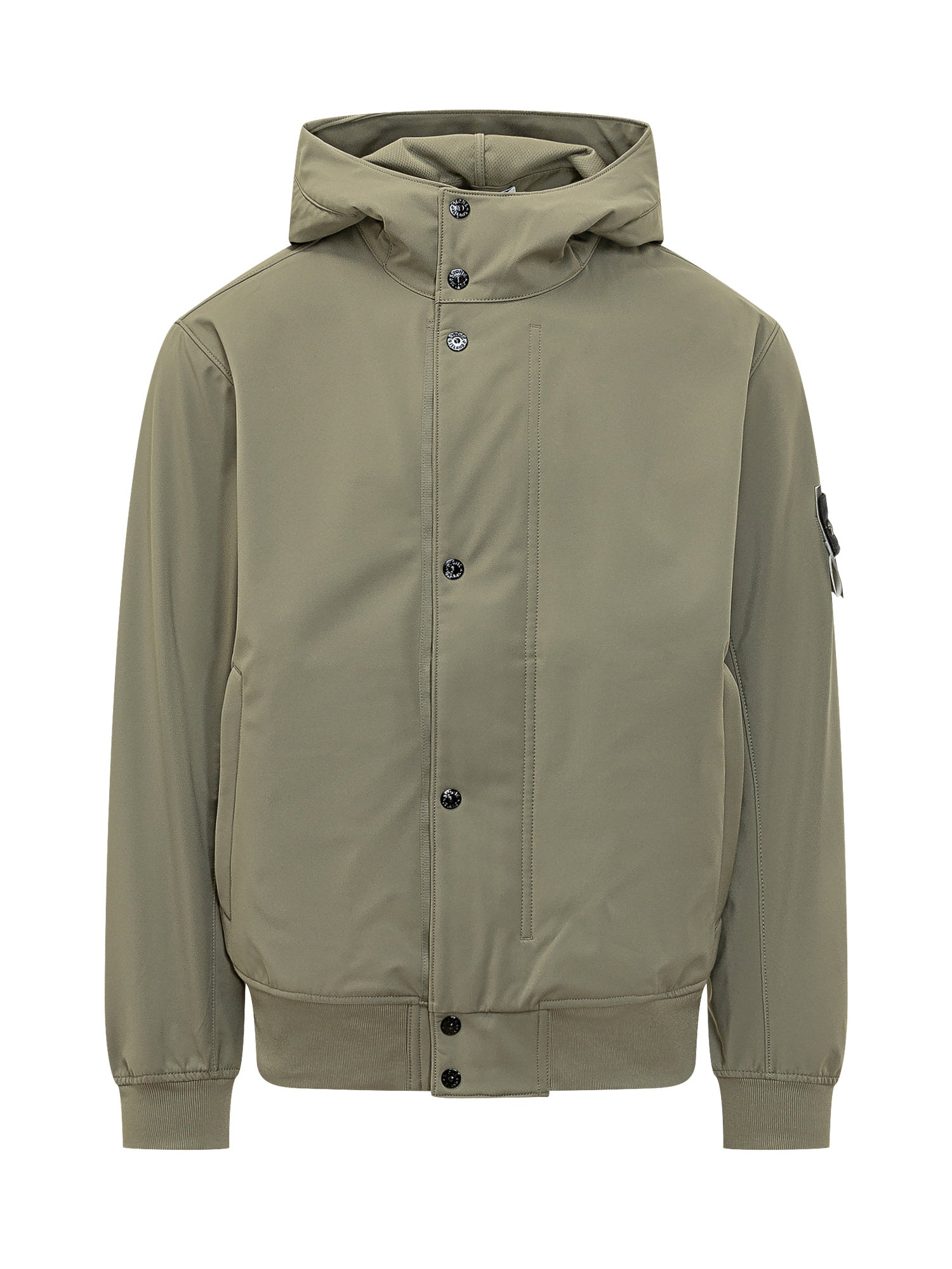 Giacca dalla vestibilità regolare con cappuccio integrato e chiusura frontale a bottoni. Il design pulito è completato da polsini e fondo elasticizzati e da una tasca funzionale sulla manica.